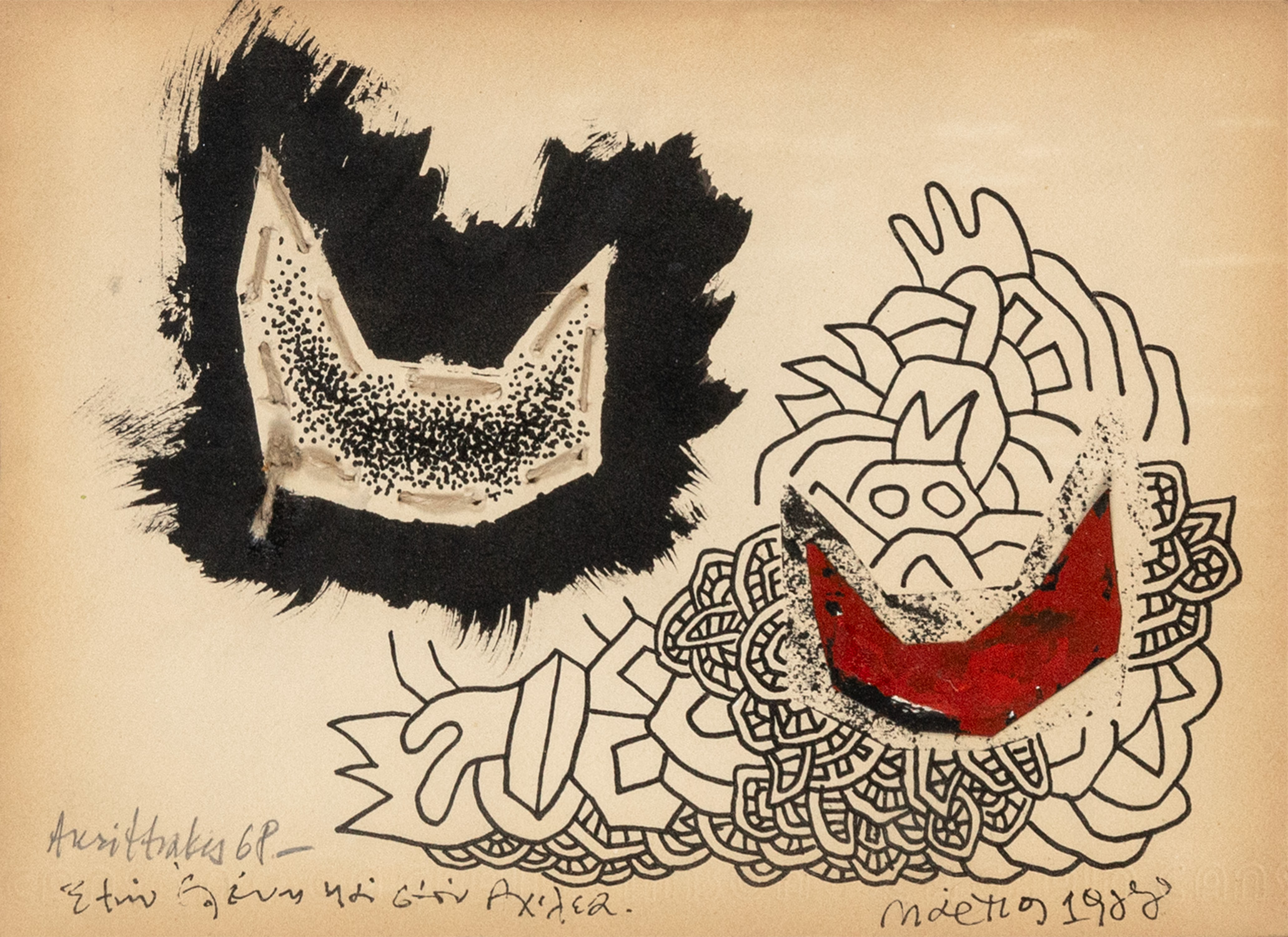 β) υπογεγραμμένο κάτω αριστερά: Akrithakis και χρονολογημένο κάτω δεξιά: 30.8.78 Athens