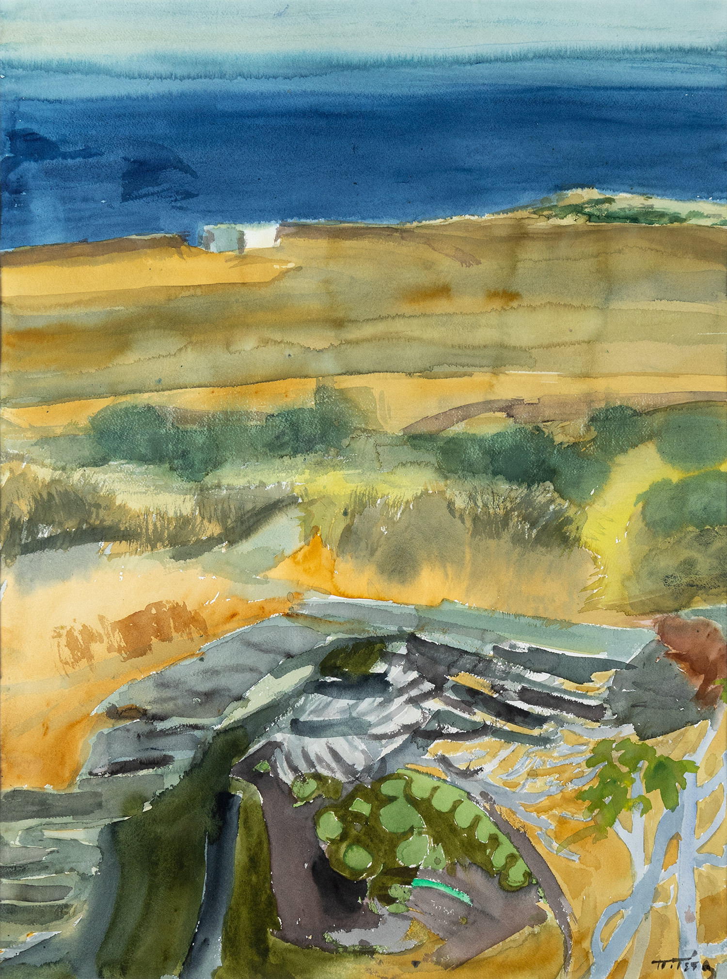 υπογεγραμμένο κάτω δεξιά: Π. Τέτσης