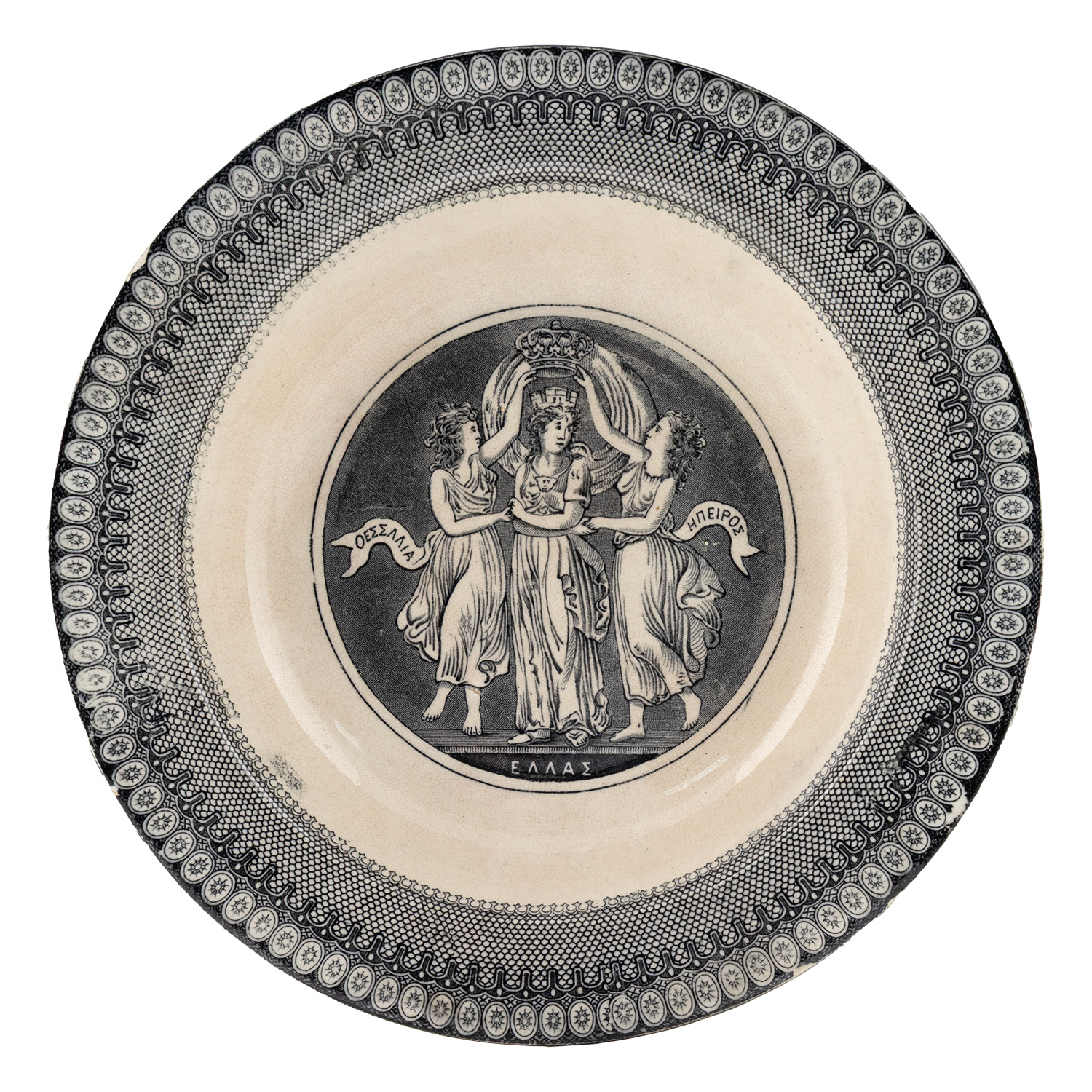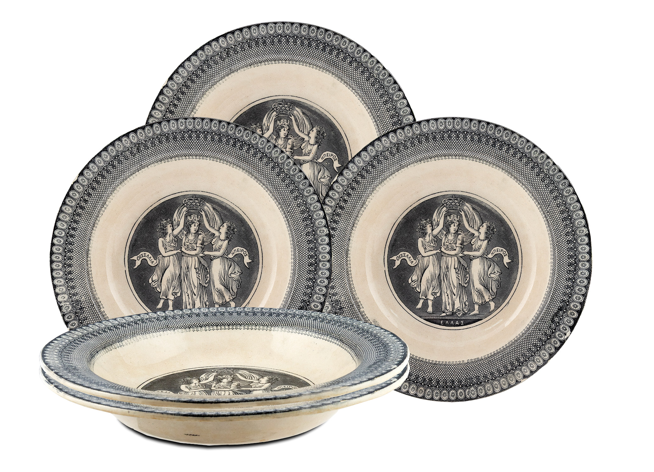 Πέντε βαθιά φαγεντιανά πιάτα, αναμνηστικά της Ένωσης της Ηπείρου και της Θεσσαλίας με την Ελλάδα το 1881 (Αγγλία, π. 1882)