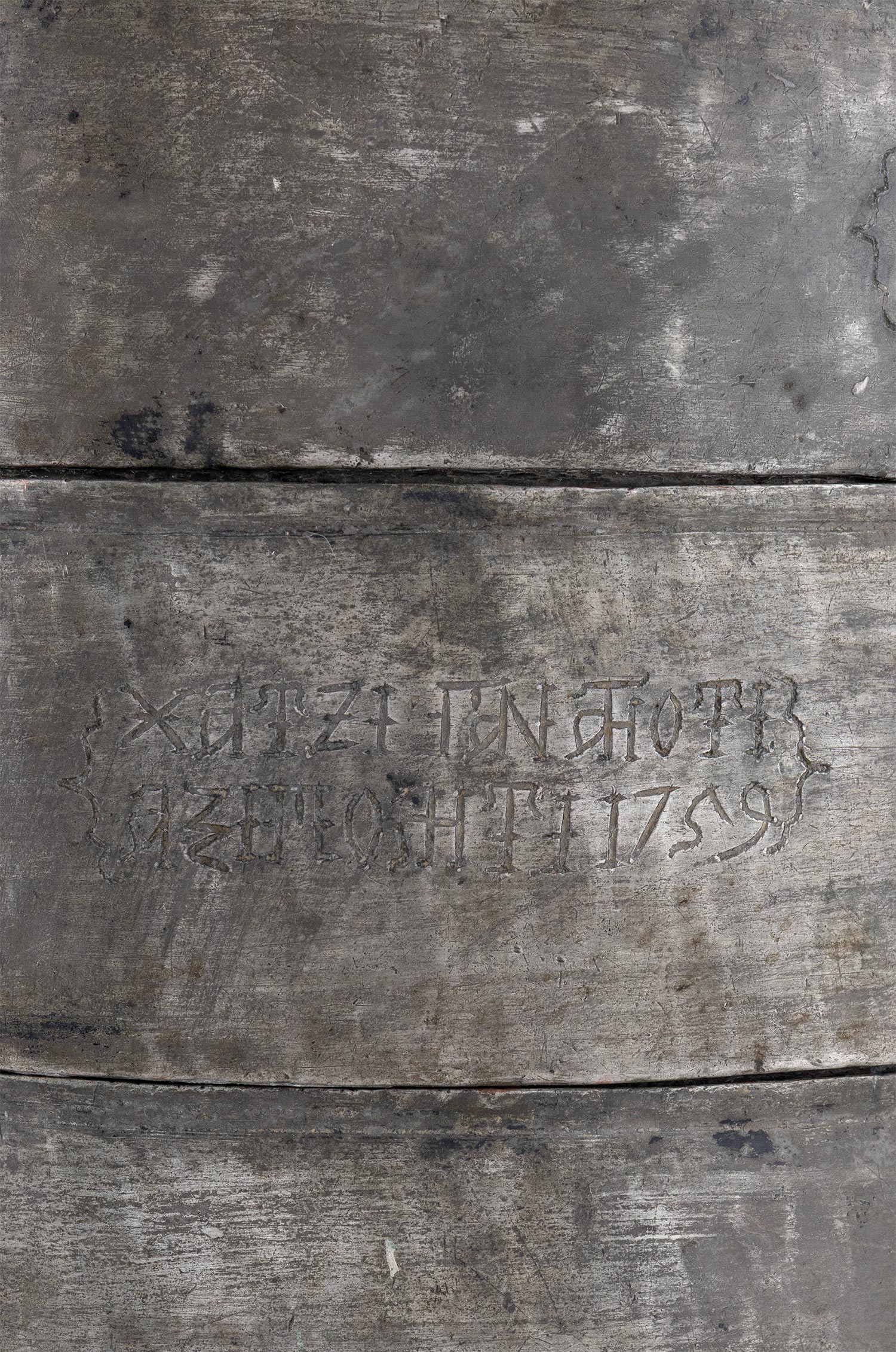 Τιμή εκτίμησης: € 1.000 - 1.500Το σώμα αποτελείται από τρία επάλληλα κυλινδρικά δοχεία (τάσια) που συγκρατούνται από πλάγια συνδετικά ελάσματα, καθώς και καπάκι με χερούλι. Στο κάτω τάσι και στο καπάκι φέρει εγχάρακτη επιγραφή «ΧΑΤΖΙΠΑΝΑΓΙΟΤΙ ΑΞΙΜΟΛΗΤΙ 1759».