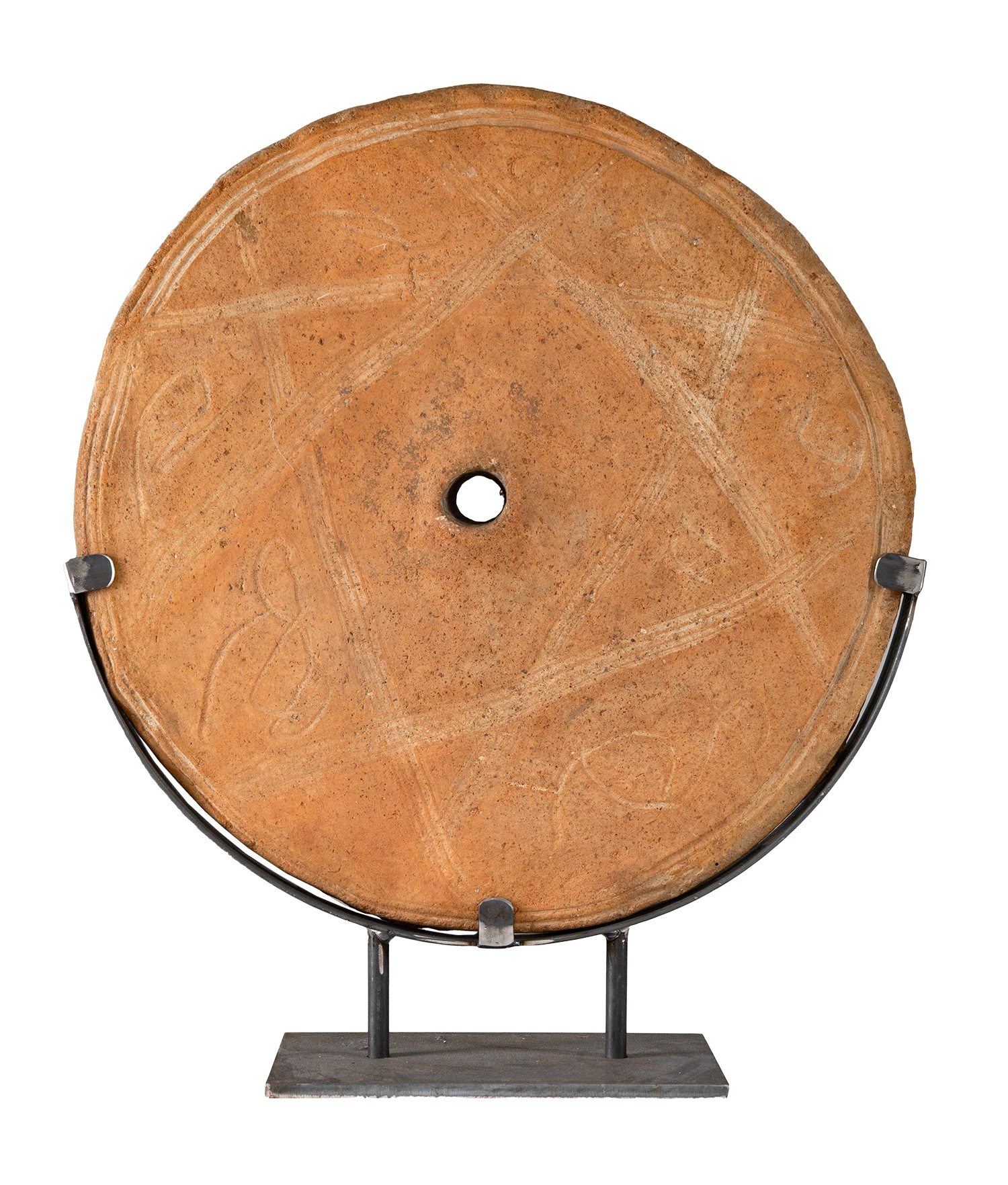 Τιμή εκτίμησης: € 800 - 1.200Εγχάρακτος διάκοσμος με σχηματοποιημένη πεντάλφα, που λειτουργεί ως αποτροπαϊκό, φυλακτικό και μαγικό σύμβολο. Στα διάχωρα συμπληρωματικός διάκοσμος από ακανόνιστα γραμμικά σχέδια.