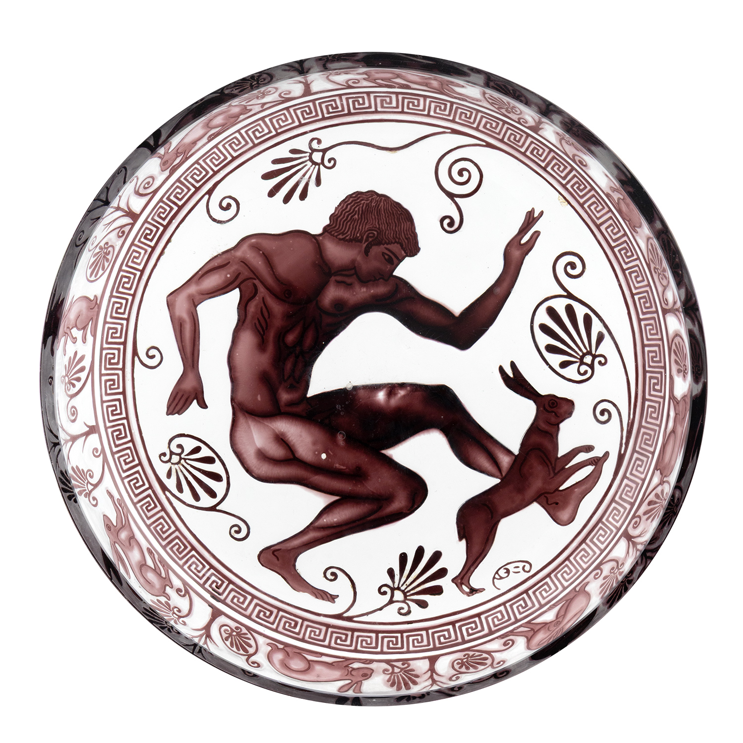 Γυάλινο πιάτο της ΟΞΕΑ με αρχαϊκό θέμα (αρχές δεκαετίας του 1920)