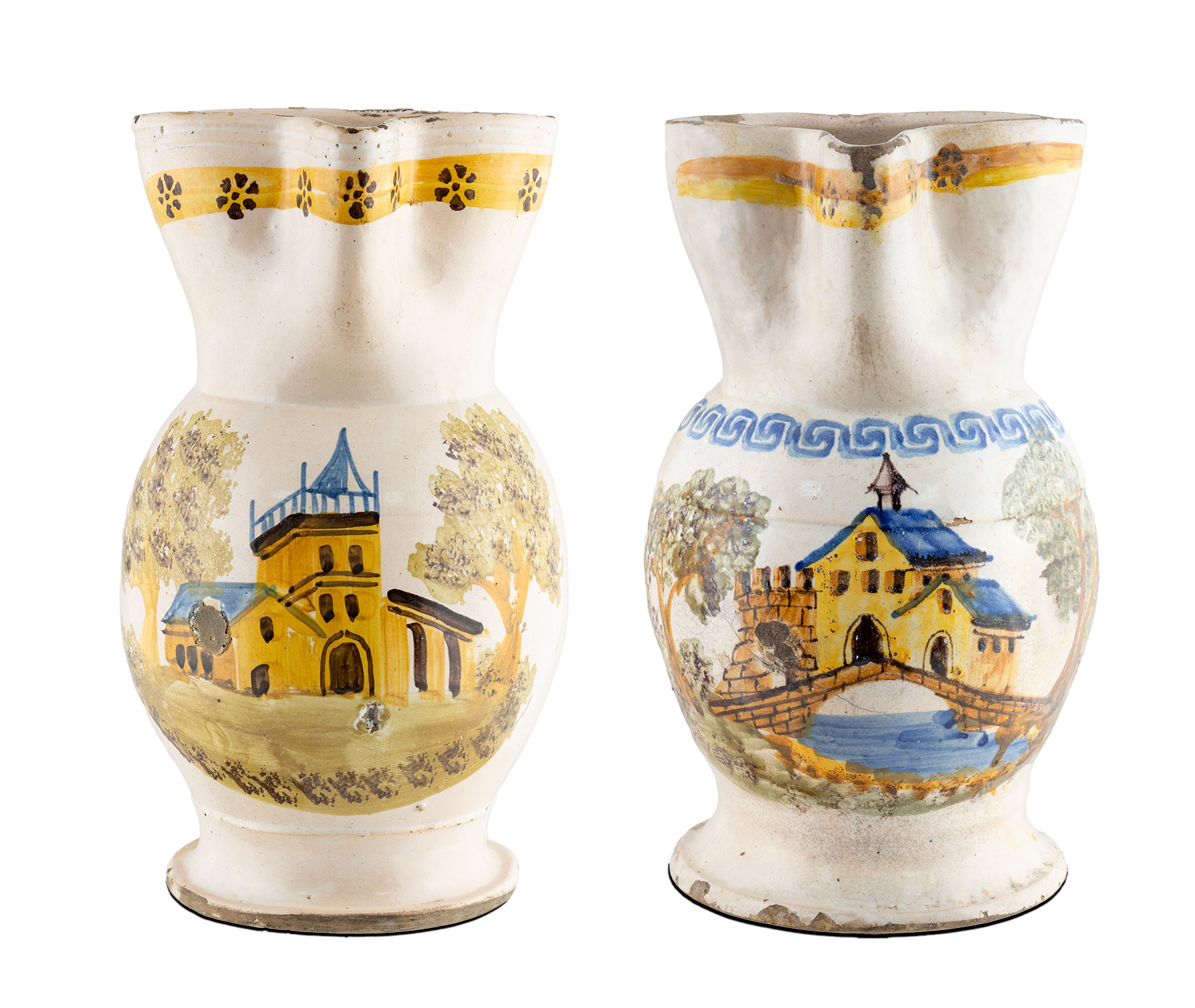 Ζεύγος μεγάλων κανατιών κρασιού από την Grottaglie της Απουλίας (β´μισό 19ου αιώνα)