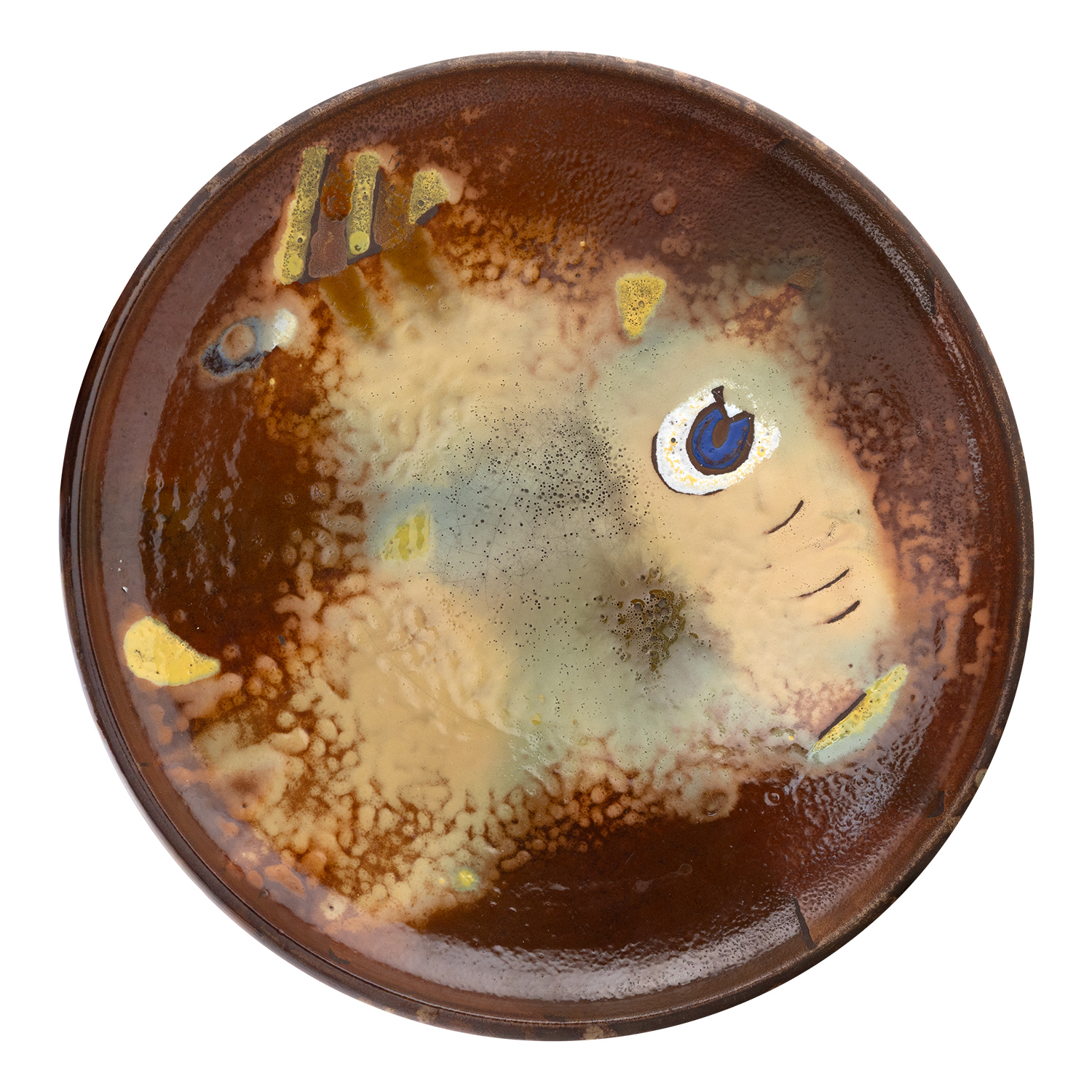 Τιμή εκτίμησης: € 800 - 1.200Μεγάλο κεραμικό πιάτο με αφηρημένη απεικόνιση ψαριού. Υπογεγραμμένο στη βάση:“PanosValsamakis”.