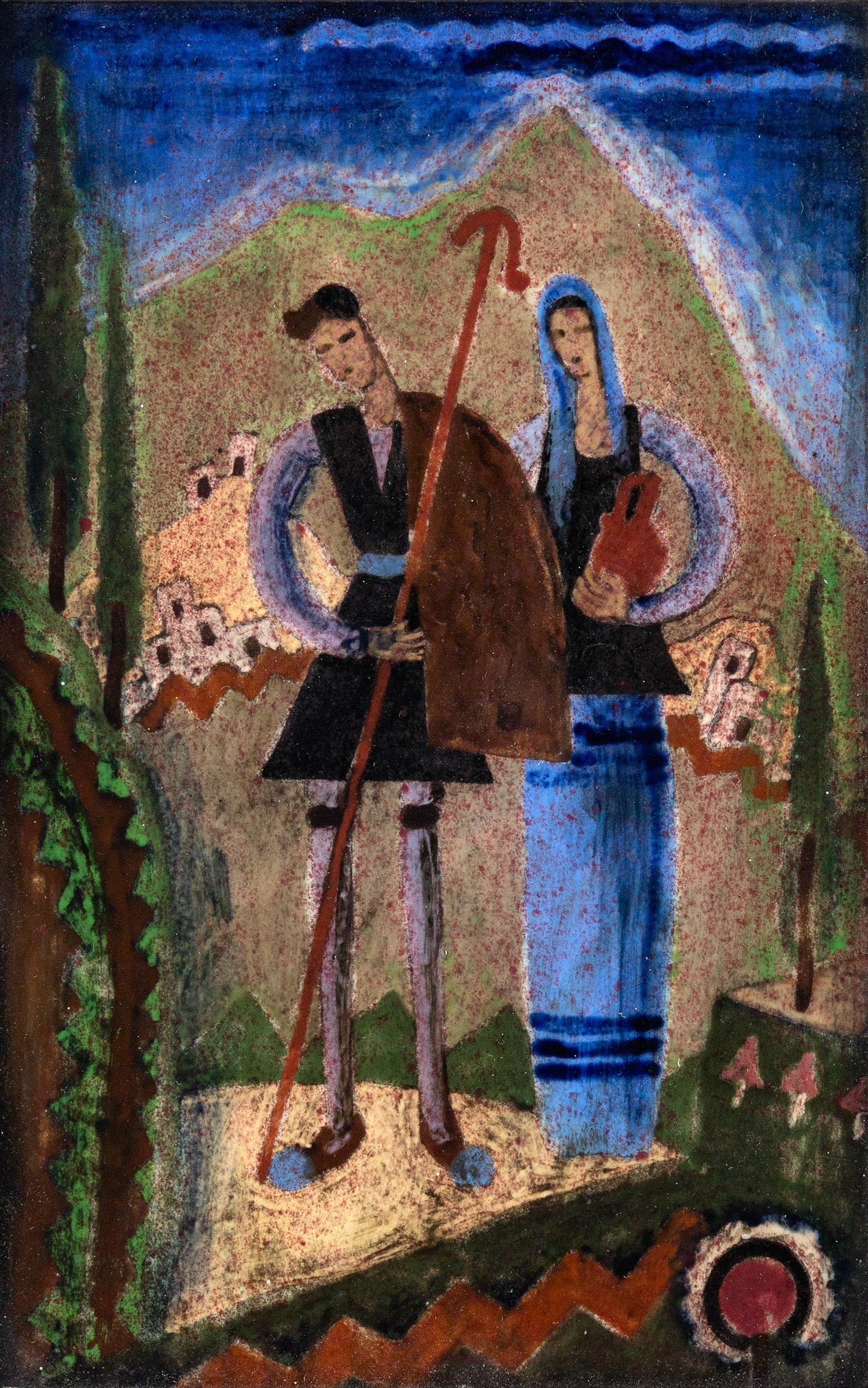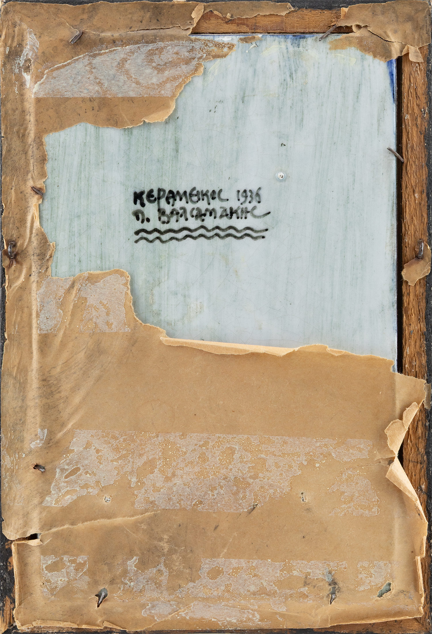 Τιμή εκτίμησης: € 600 - 800Απεικονίζει ζευγάρι χωρικών σε ορεινό τοπίο. Χαρακτηριστικό έργο της τεχνοτροπίας του καλλιτέχνη κατά τη δεκαετία του 1930 στο εργοστάσιο του Κεραμεικού. Υπογεγραμμένο πίσω «Π.Βαλσαμάκης, ΚΕΡΑΜΕΙΚΟΣ 1936».