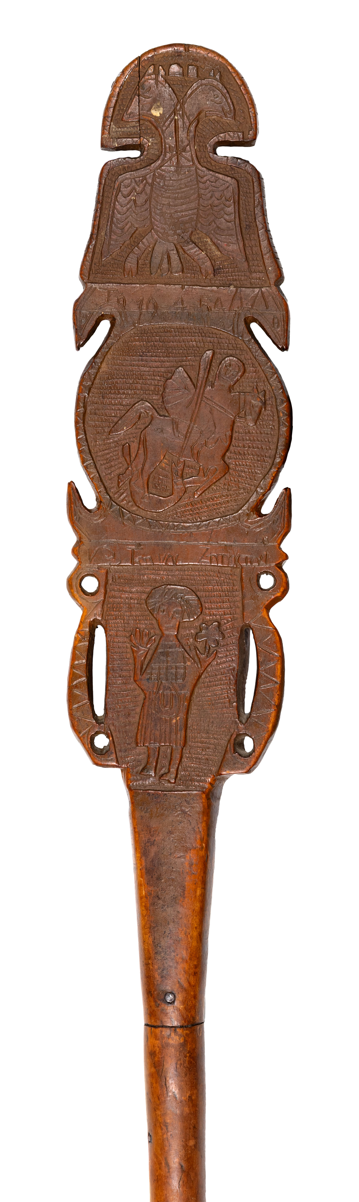 Ξυλόγλυπτη ρόκα (χρονολογημένη 1954)