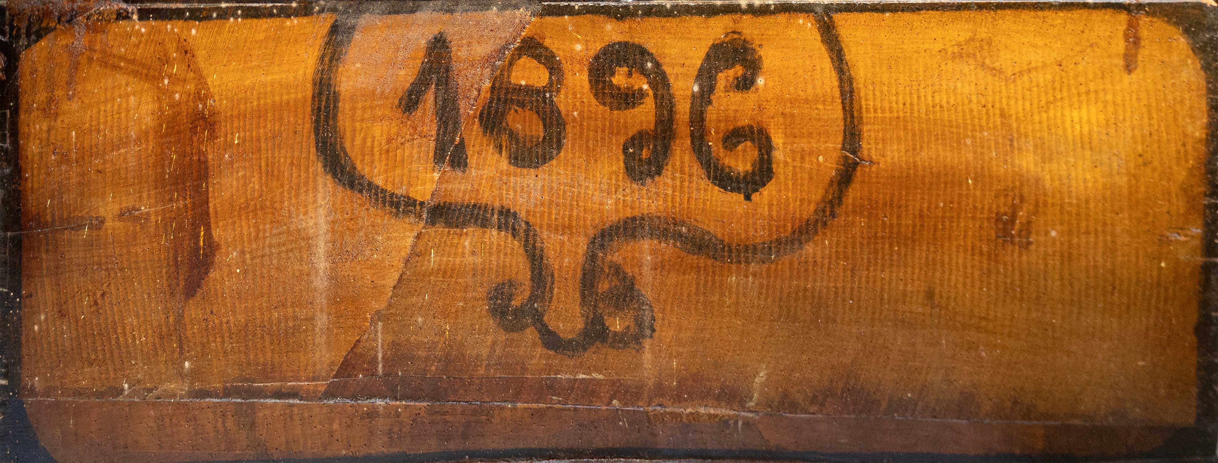 Στην εμπρόσθια όψη σκαλιστά κυπαρίσσια με κυματίζουσες κορυφές και άνθινοι ρόδακες. Στην πίσω όψη της, χρονολογία 1896.