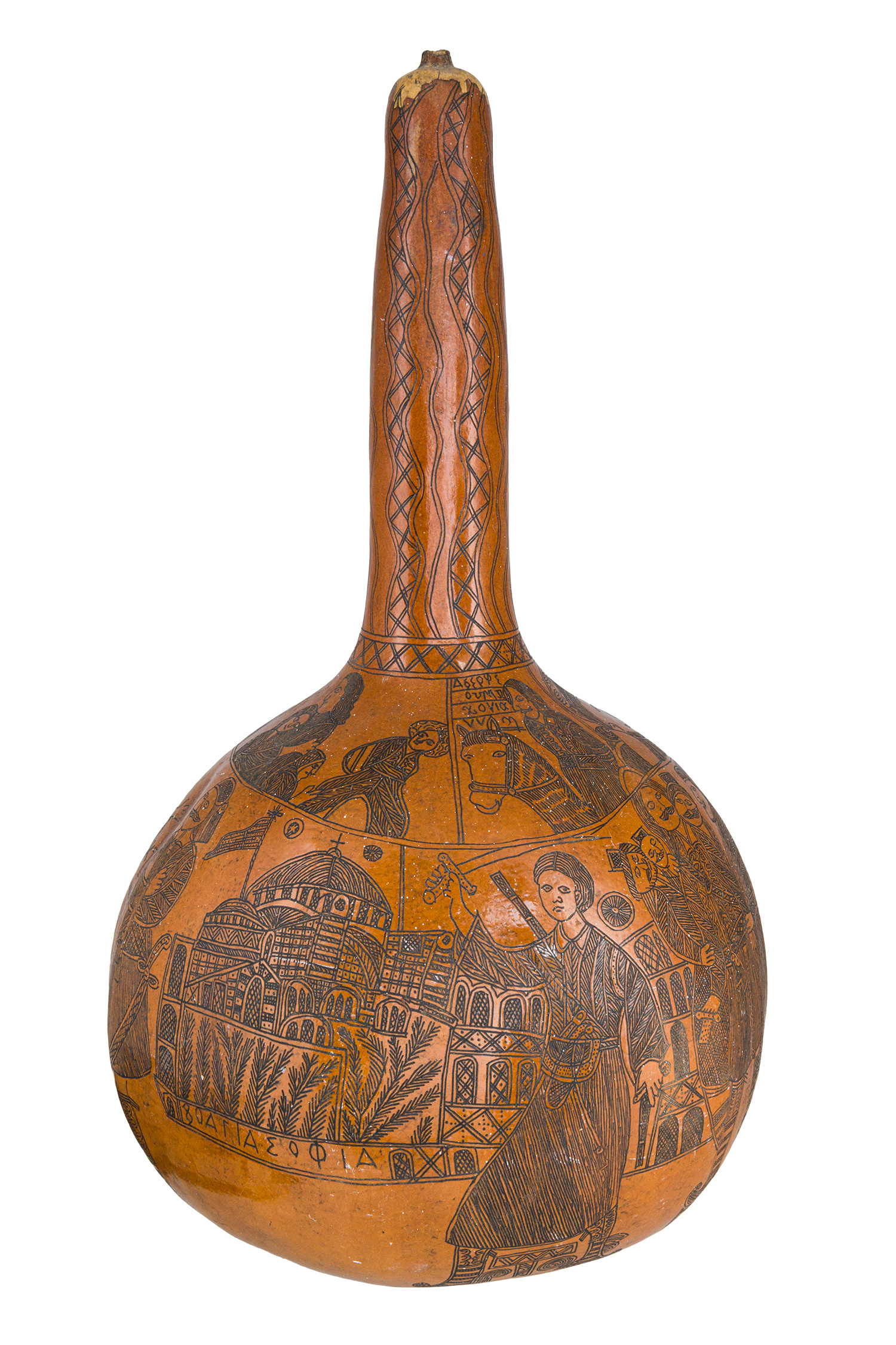 Αποξηραμένη κολοκύθα («κολότζι») με τη σύλληψη του Αθανάσιου Διάκου (Κύπρος, τέλος 19ου - αρχές 20ού αιώνα)