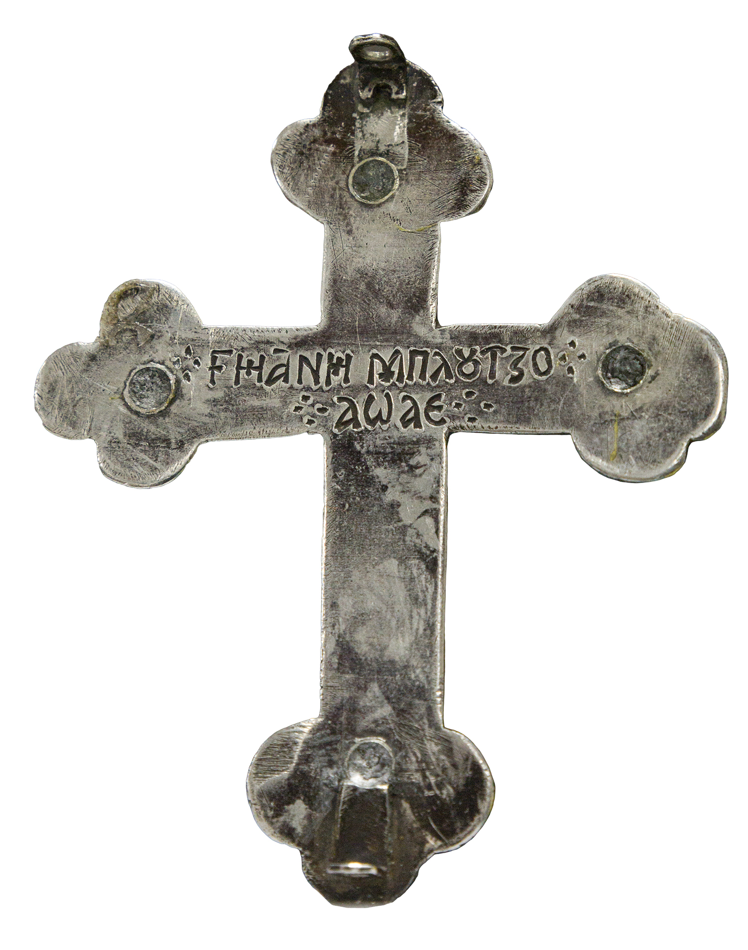 Αμφίπλευρος ασημένιος επίχρυσος σταυρός του Καλαρρυτινού αργυροχόου Ιωάννη Μπλούτζου (Ήπειρος, 1815)