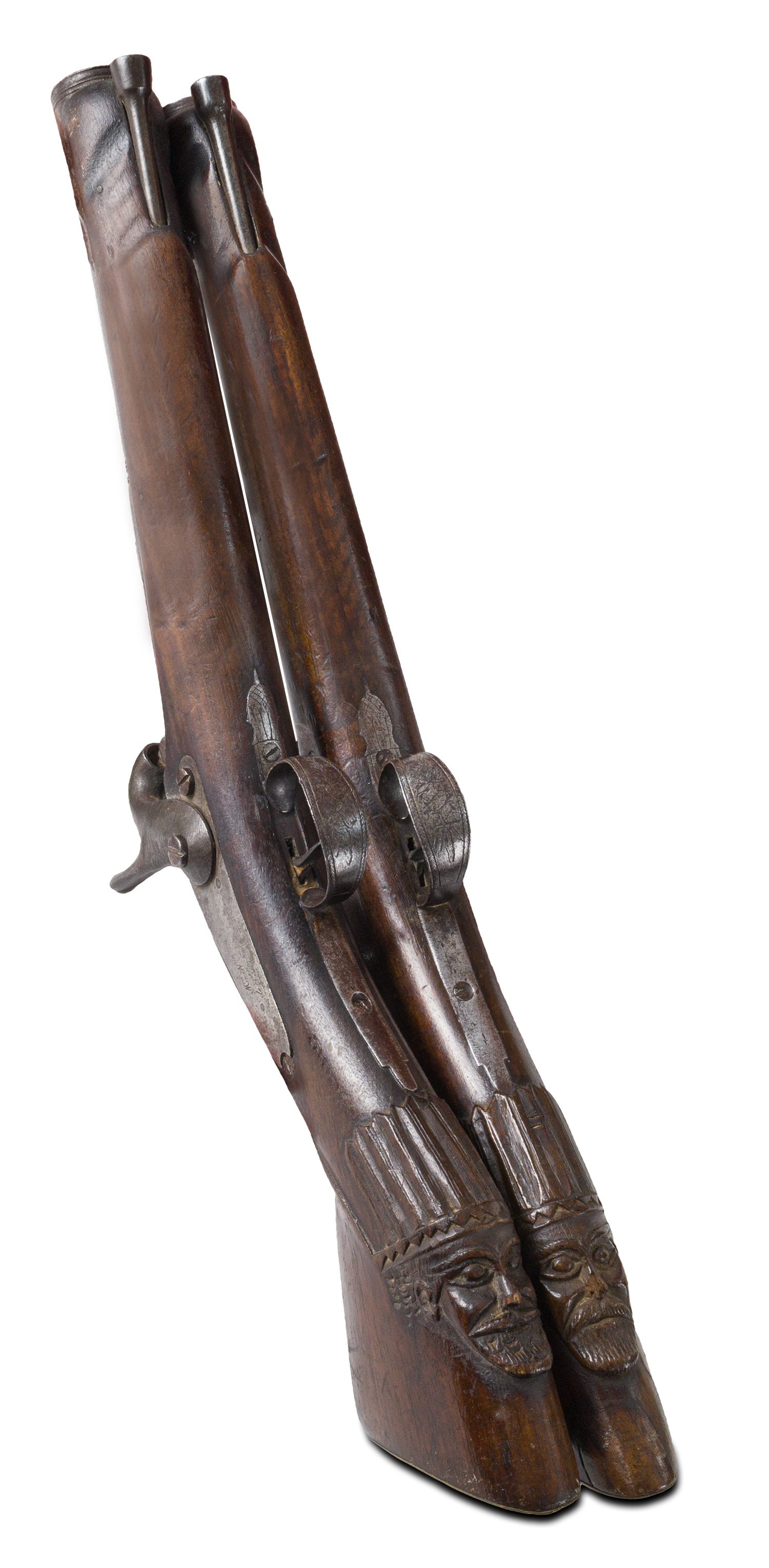 Στο κάτω μέρος του κοντακιού φέρουν σκαλισμένο πρόσωπο γενειοφόρου πολεμιστή. μήκος: 48,5 εκ. (το καθένα)