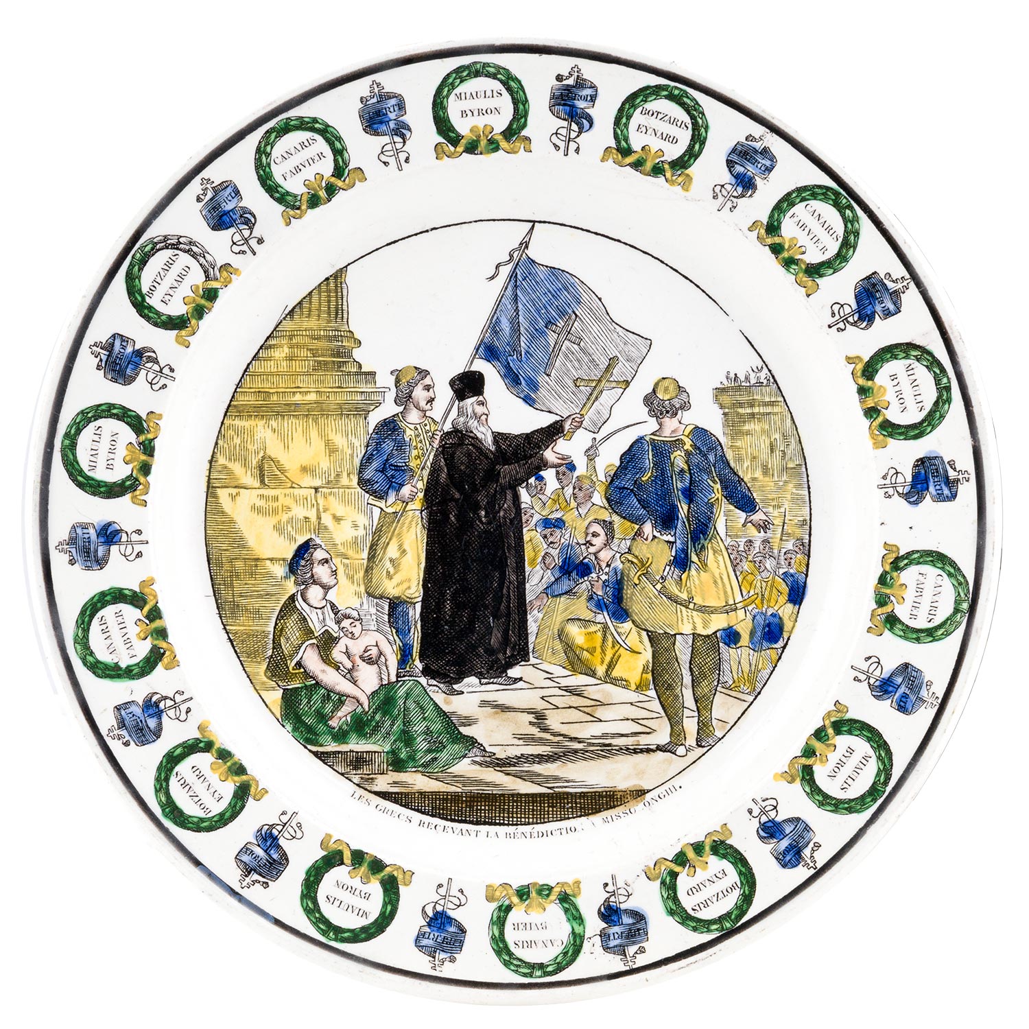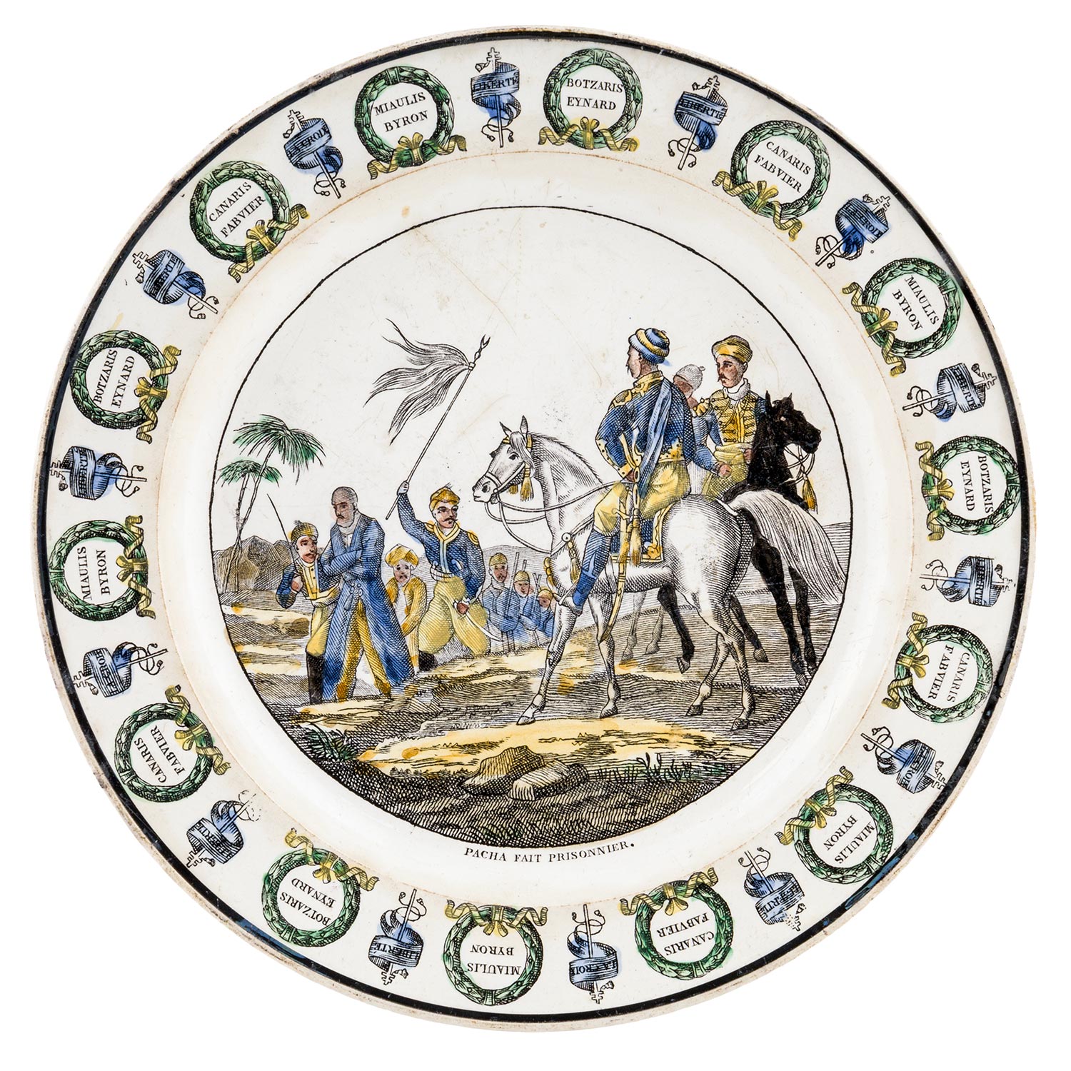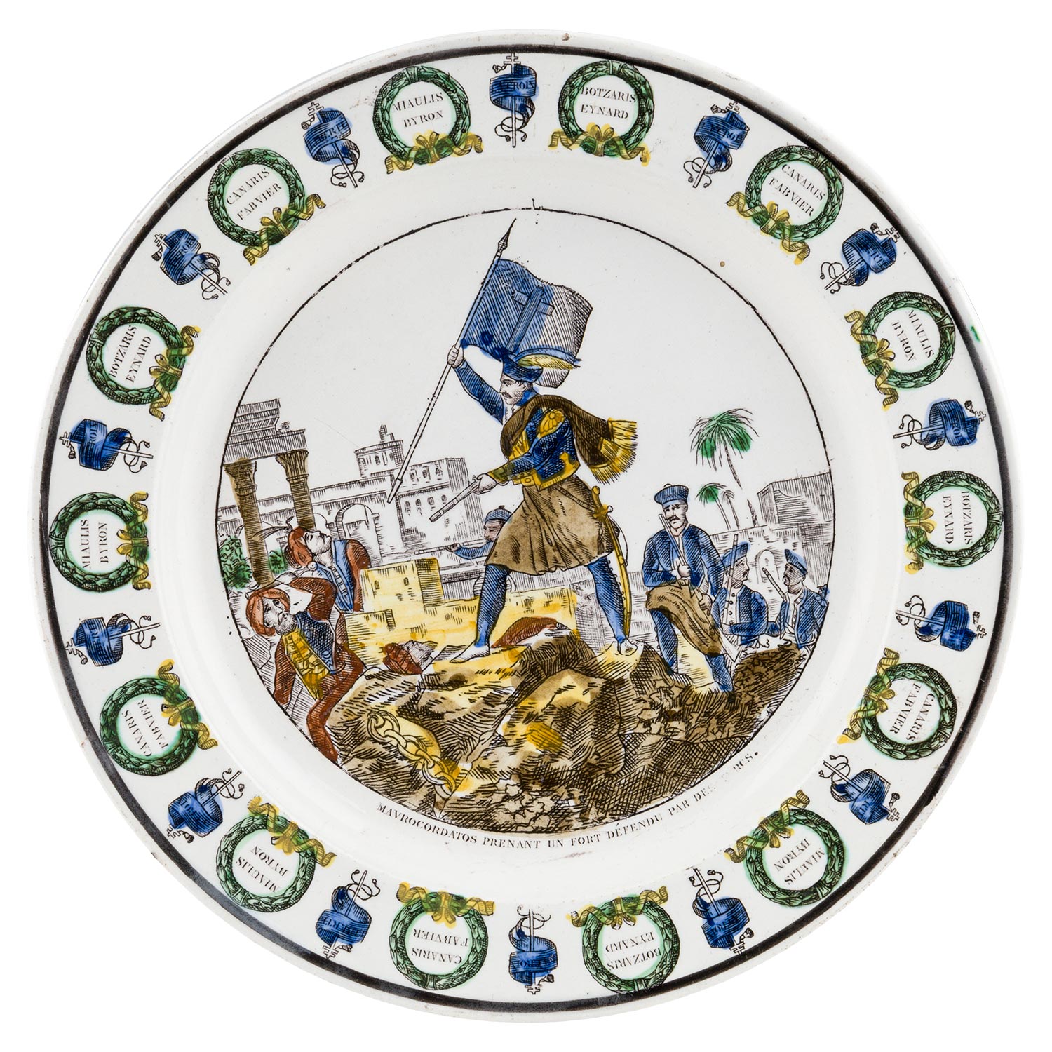 Τέσσερα πολύχρωμα πιάτα με φιλελληνικές παραστάσεις (Γαλλία, Montereau, π. 1830)