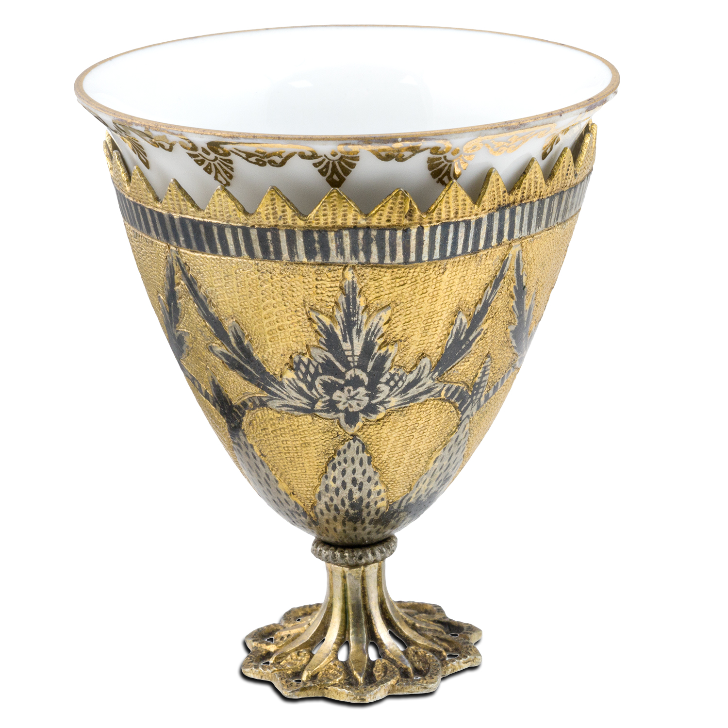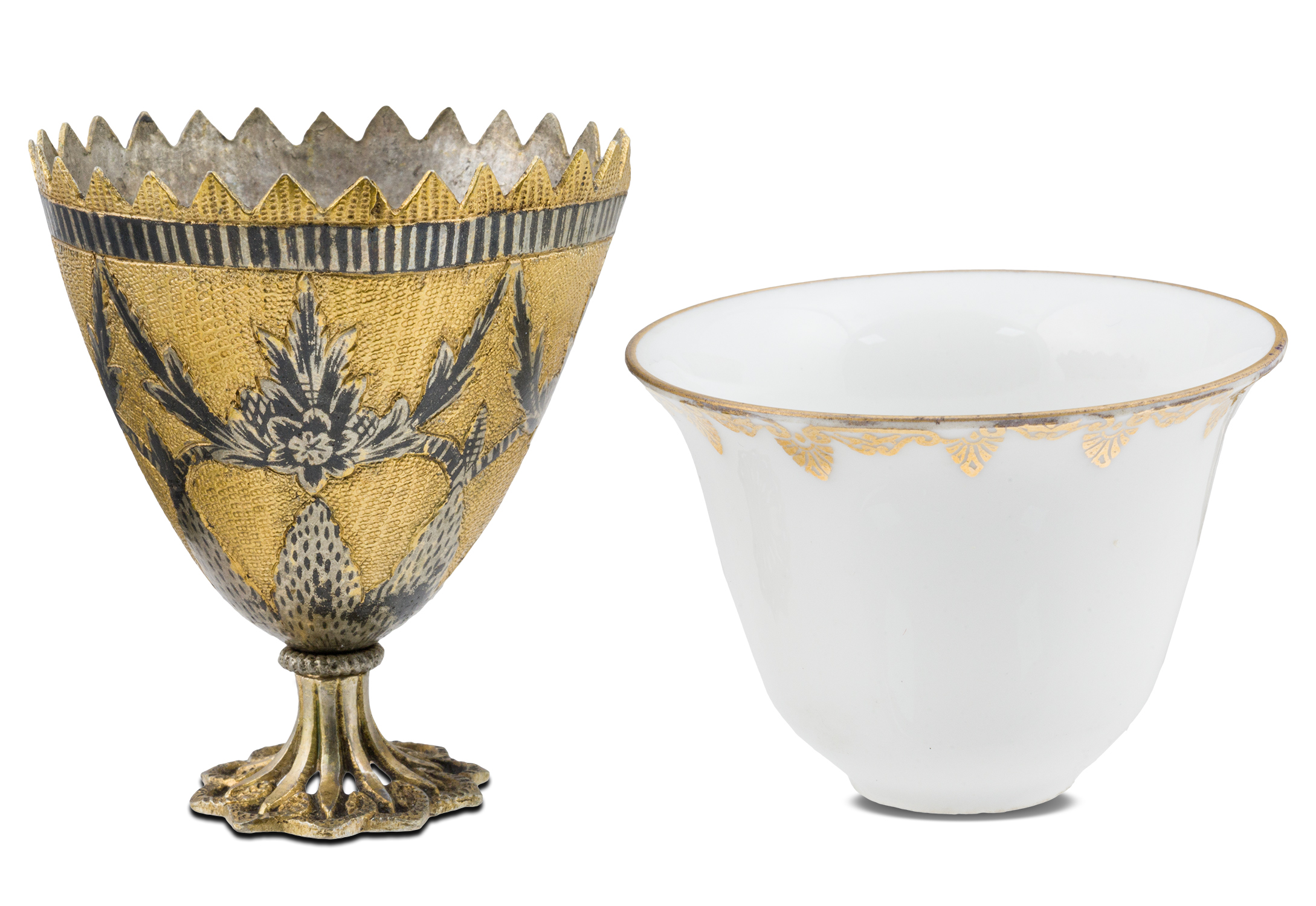 Έξι ασημένια επίχρυσα ζάρφια με τα πορσελάνινα φλιτζάνια τους (α΄τέταρτο 19ου αιώνα)