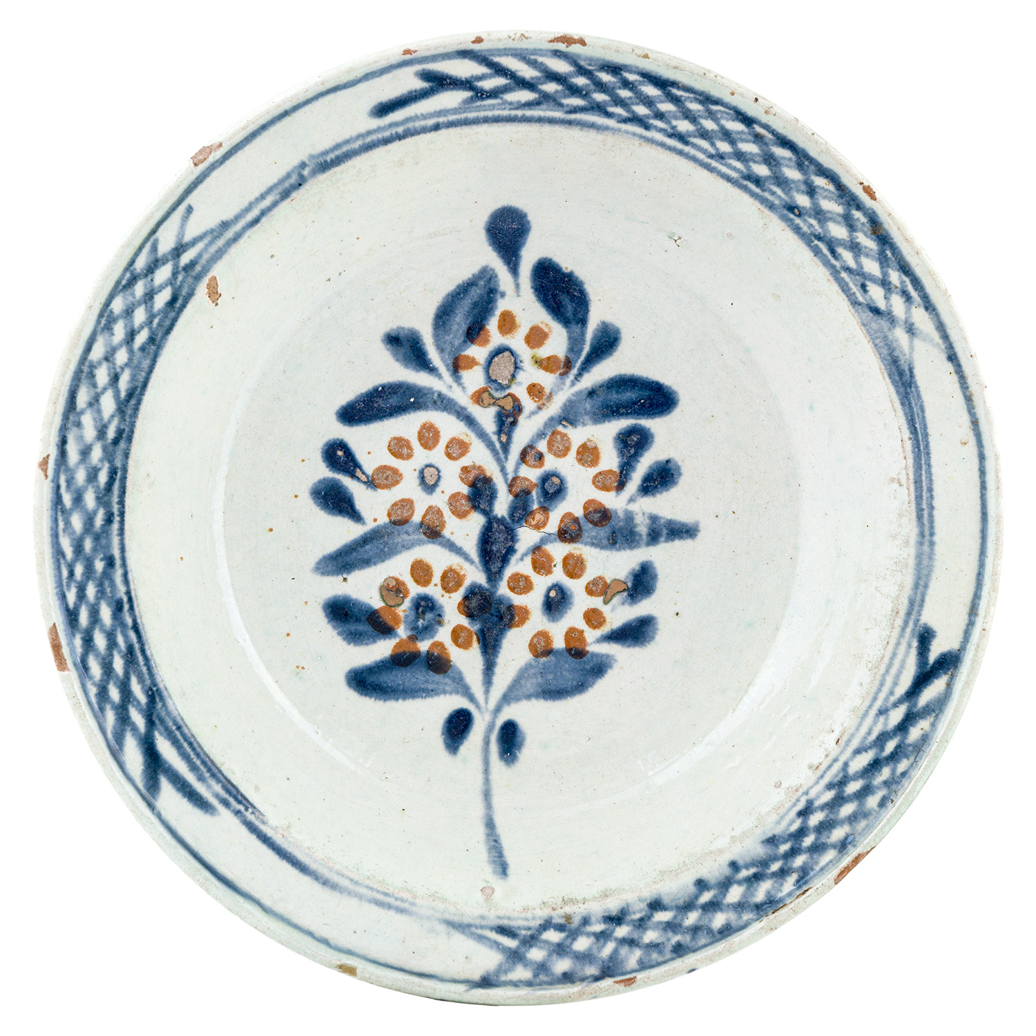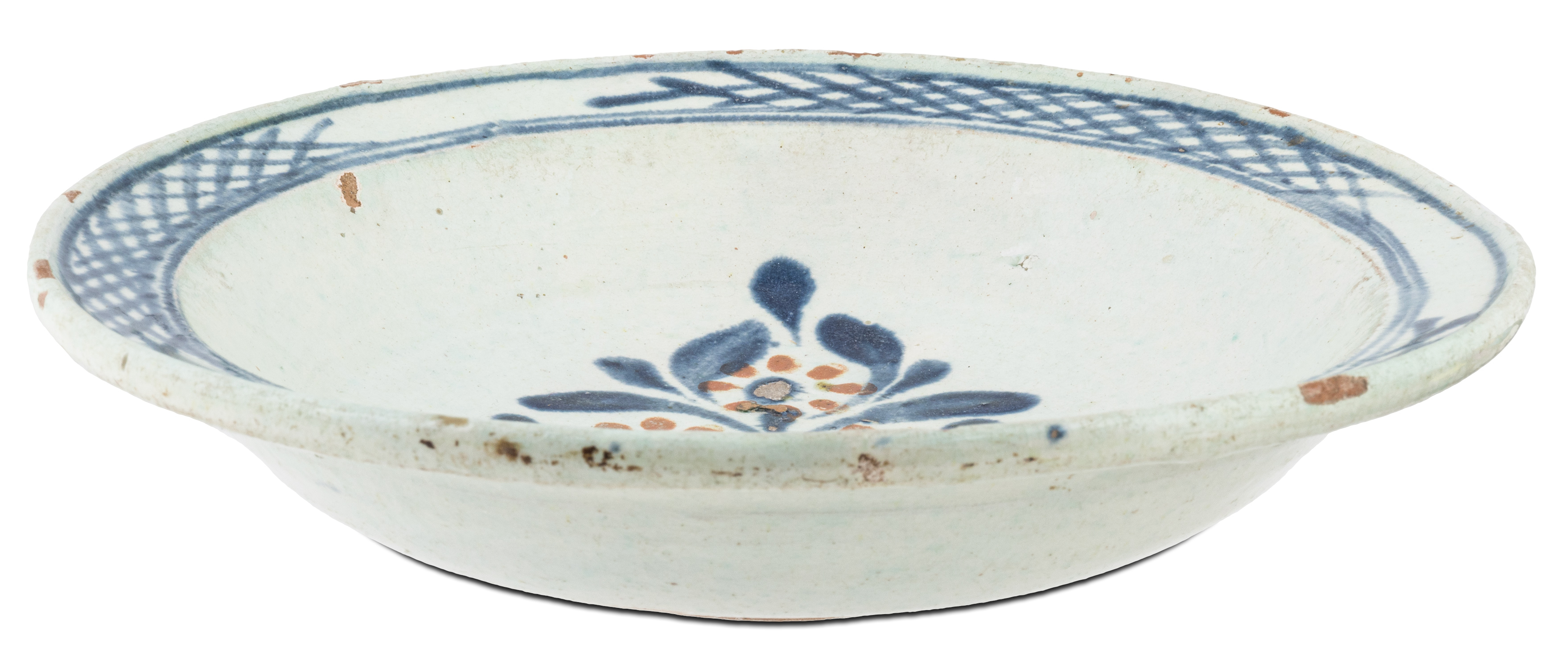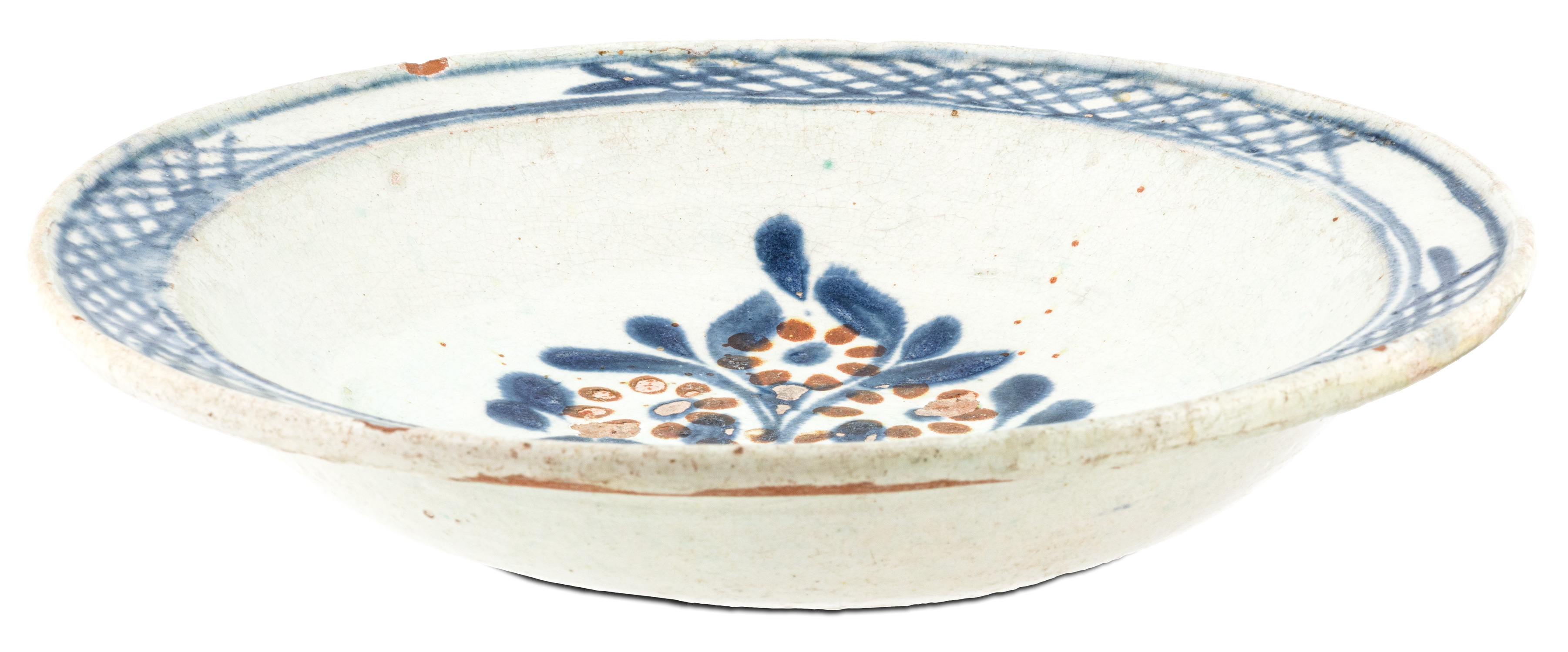 Τιμή εκτίμησης: € 1.500 - 2.000Κόκκινος πηλός με υπόλευκο επίχρισμα και γραπτό άνθινο διάκοσμο που αποδίδεται με μπλε του κοβαλτίου και καφεκόκκινο κάτω από διαφανή υάλωση.