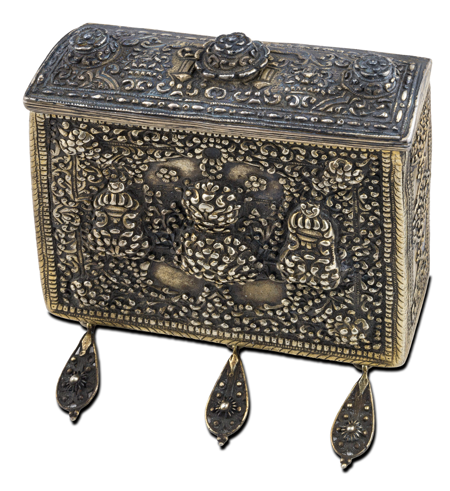 Πυκνός, έκτυπος, καλεμιστός διάκοσμος με turquerie επιδράσεις. διαστάσεις: 10 x 11 x 3,4 εκ.