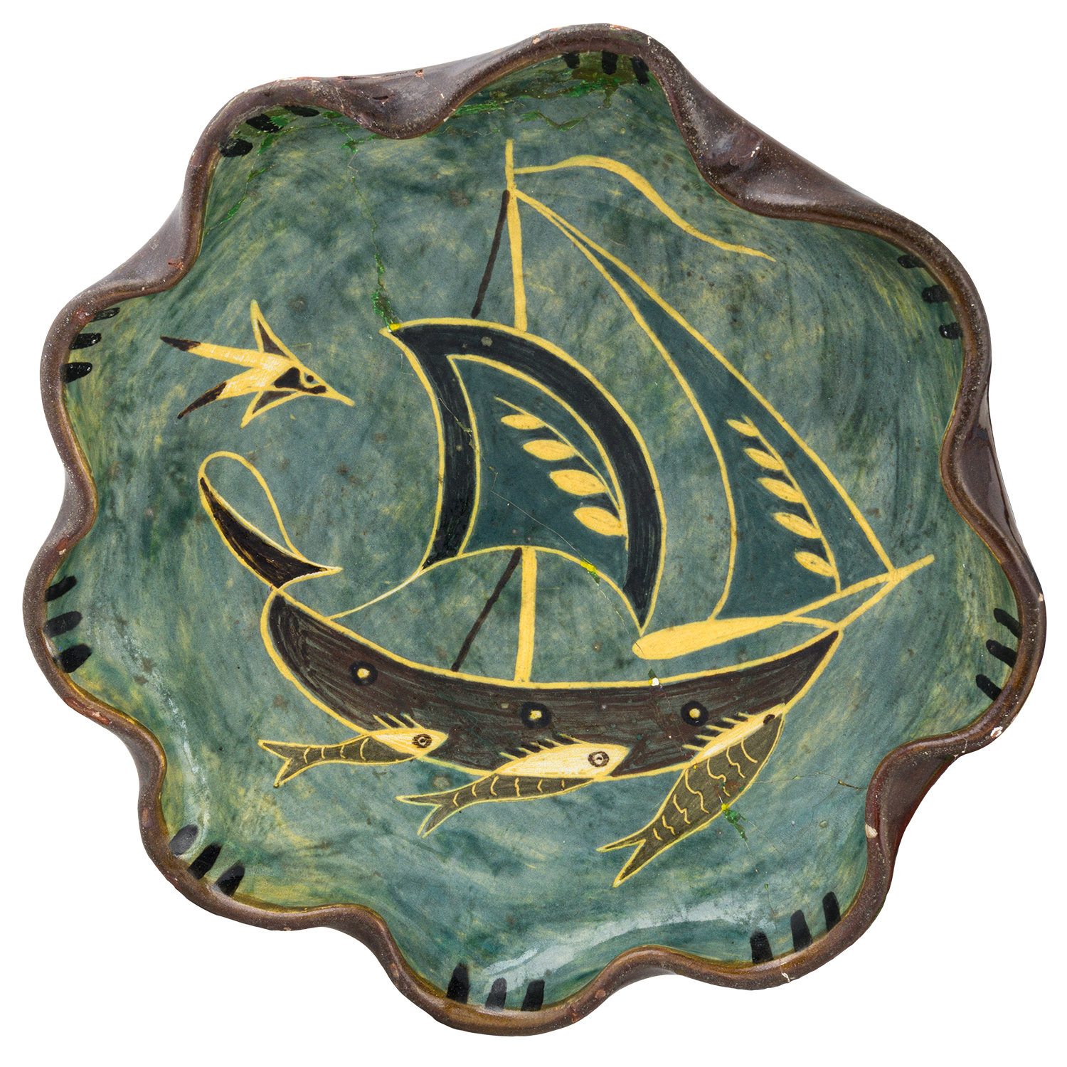 Τιμή εκτίμησης: € 400 - 600Γραπτός διάκοσμος με ιστιοφόρο που πλέει στην ανοικτή θάλασσα.
