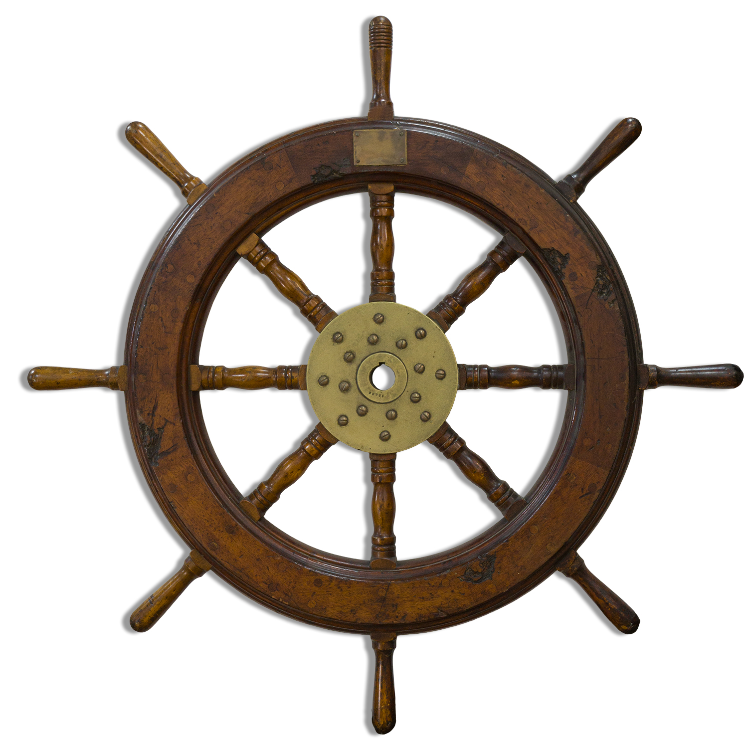 Τιμόνι πλοίου από ξύλο και ορείχαλκο, κατασκευής της Brower Furniture Company στ...