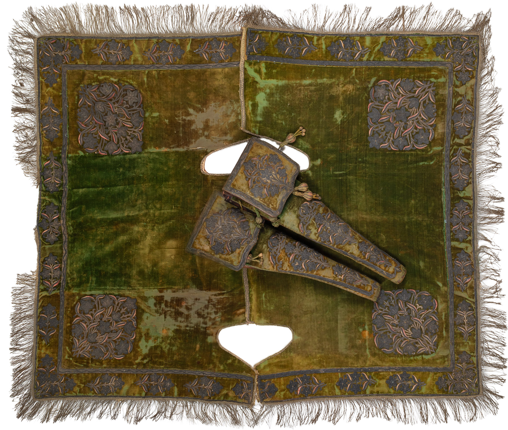 Ζευγάρι δερμάτινες χρυσοκέντητες θήκες για πιστόλες και χρυσοκέντητο υπόσαγμα γι...
