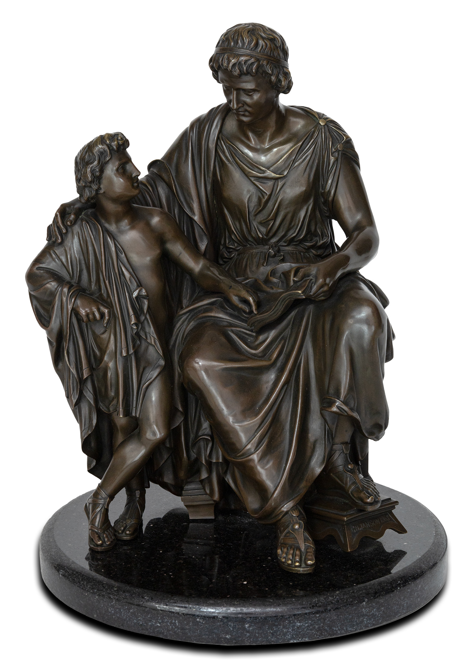 Ορειχάλκινη σύνθεση με αρχαιοελληνική παράσταση, τον Μέγα Αλέξανδρο σε νεαρή ηλικία διδασκόμενο από τον φιλόσοφο Αριστοτέλη.