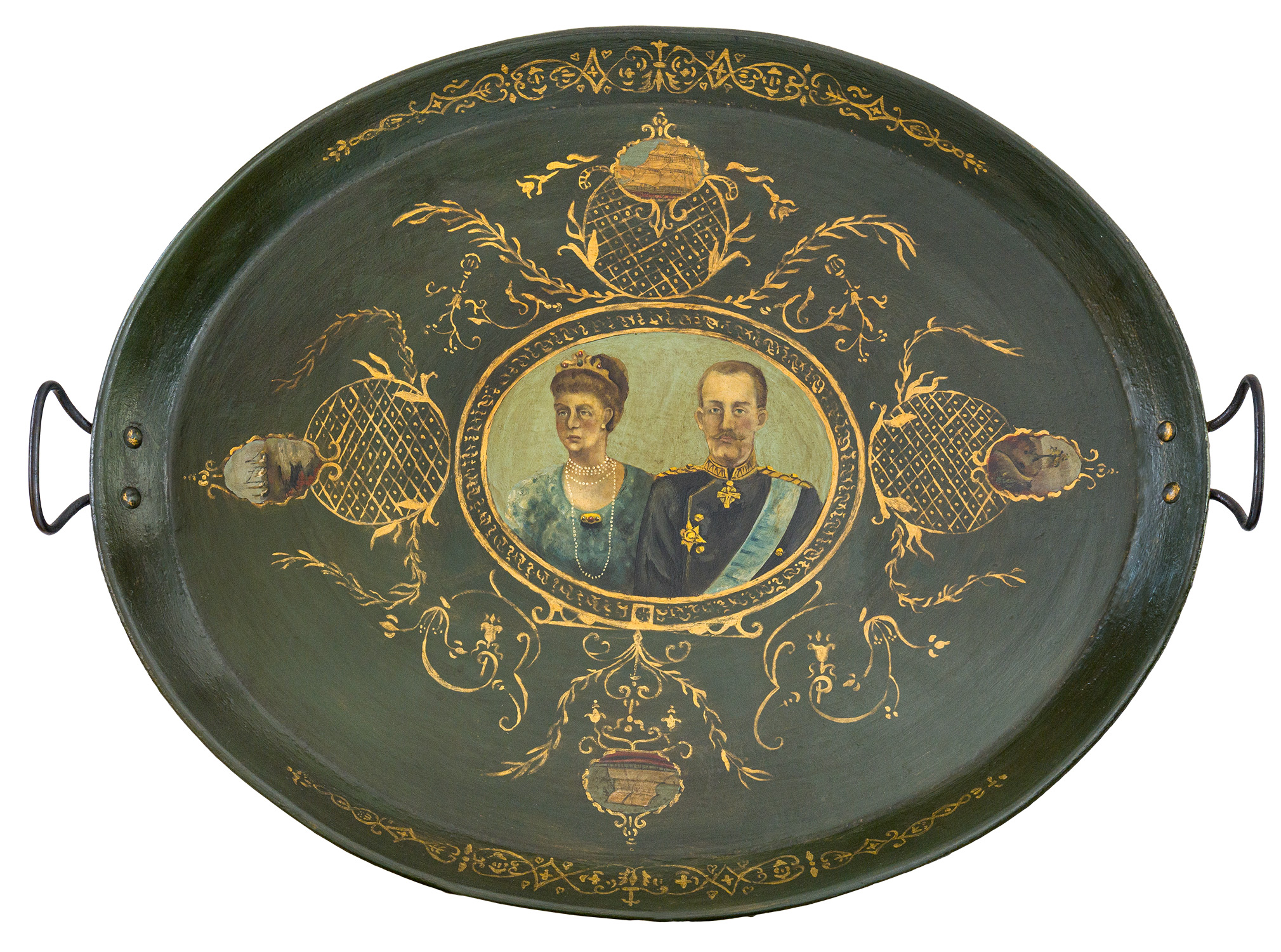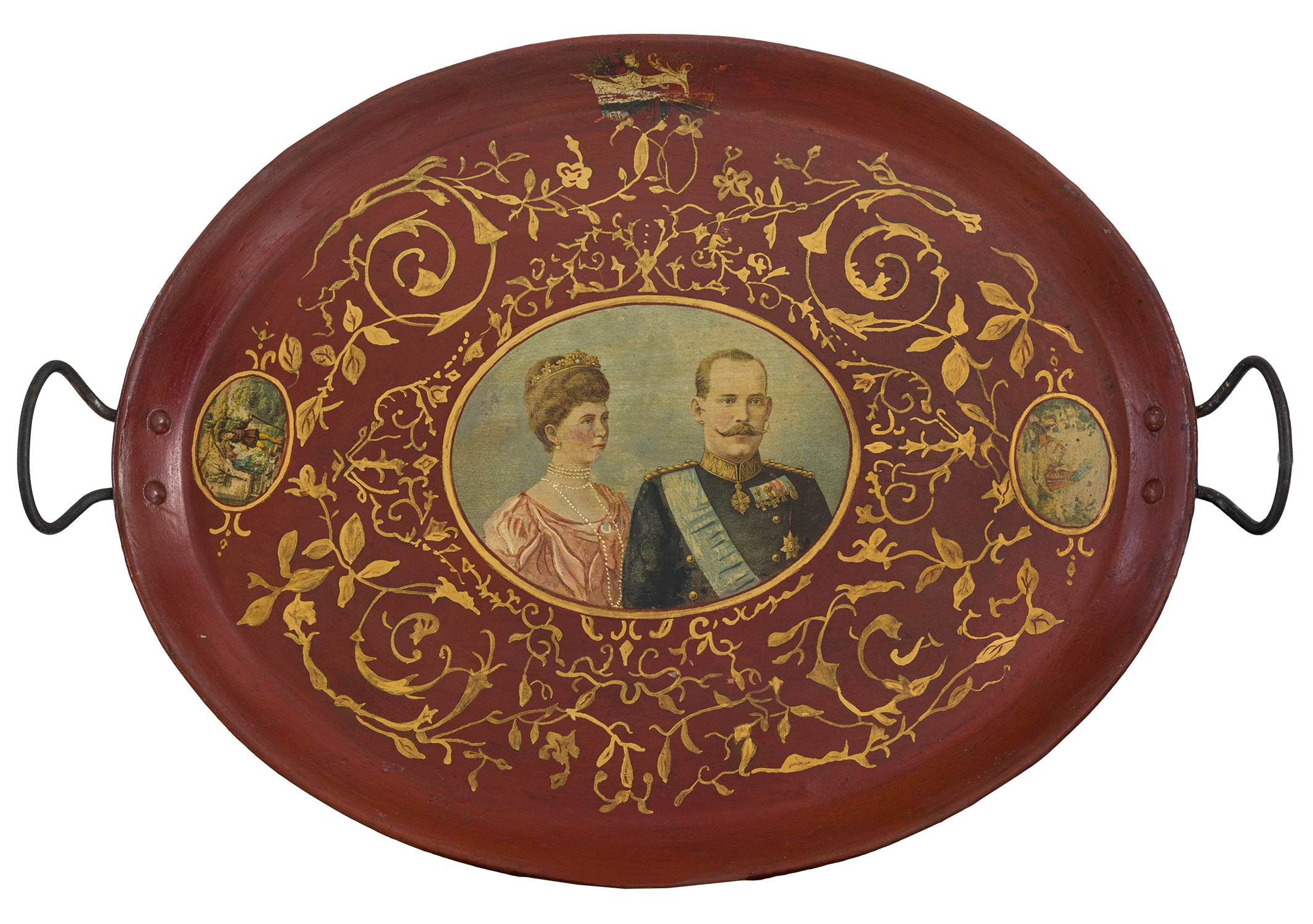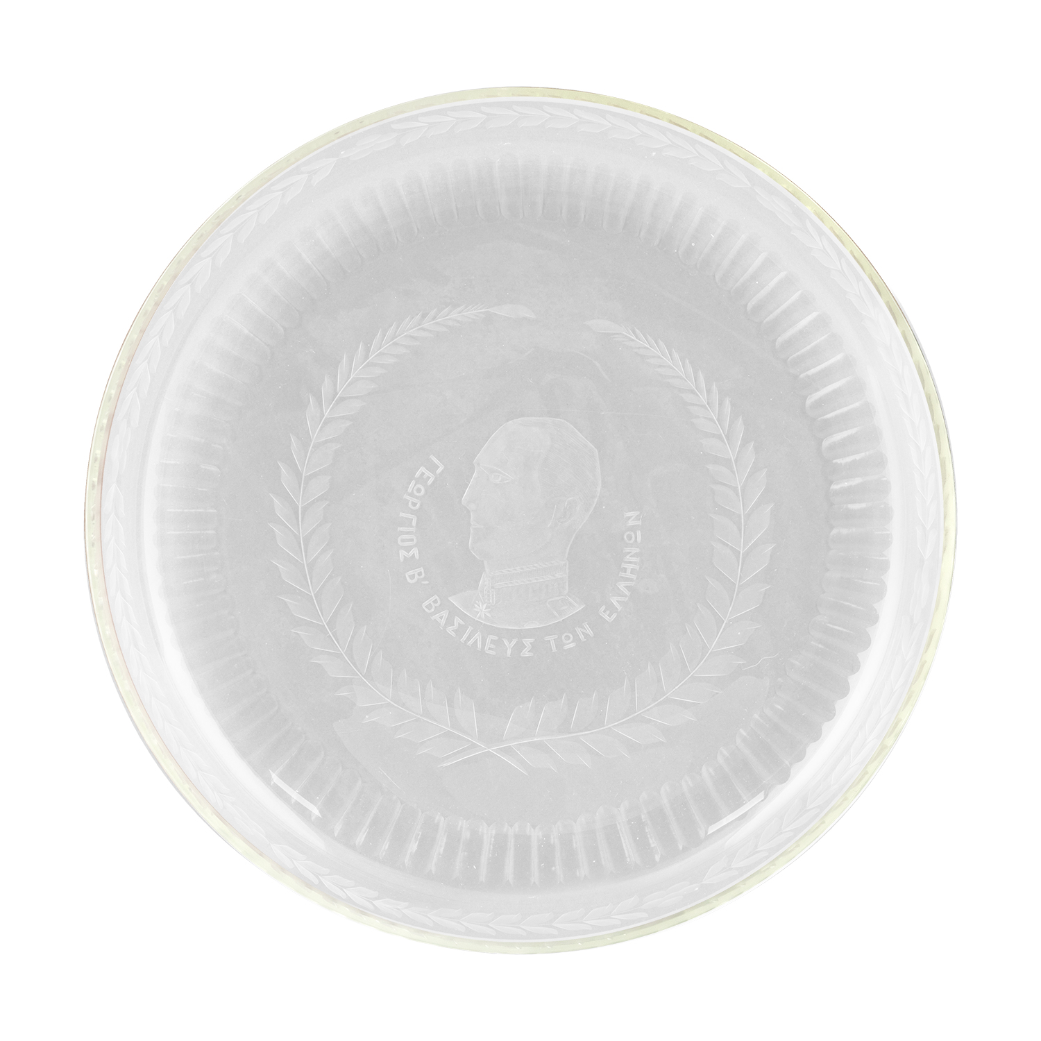 Περιμετρικά παραστάσεις του Κωνσταντίνου ως αρχιστράτηγου των Βαλκανικών Πολέμων και του βασιλικού ζεύγους φιλοτεχνημένες με σαβάτι. Επιστόμιο από κεχριμπάρι.