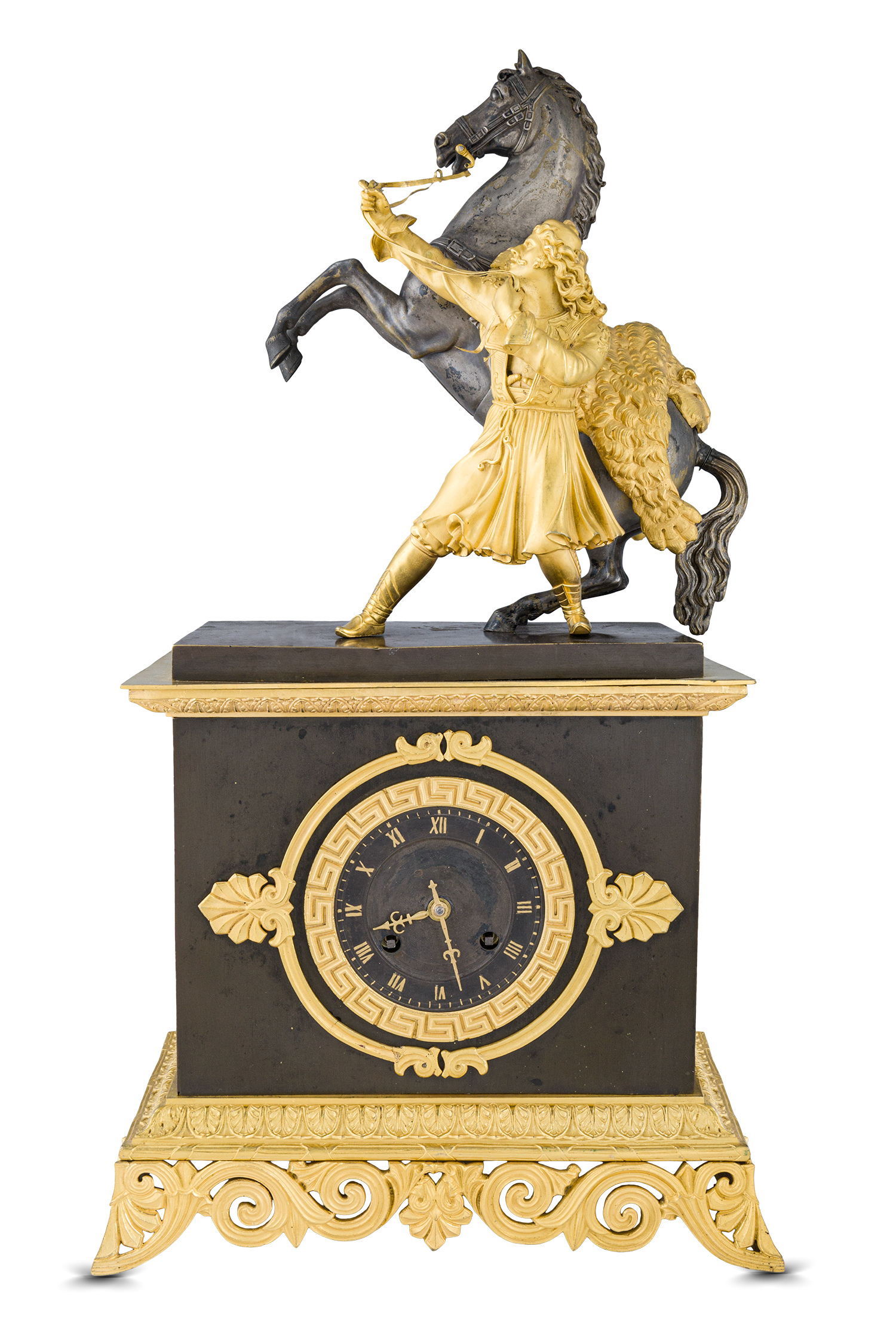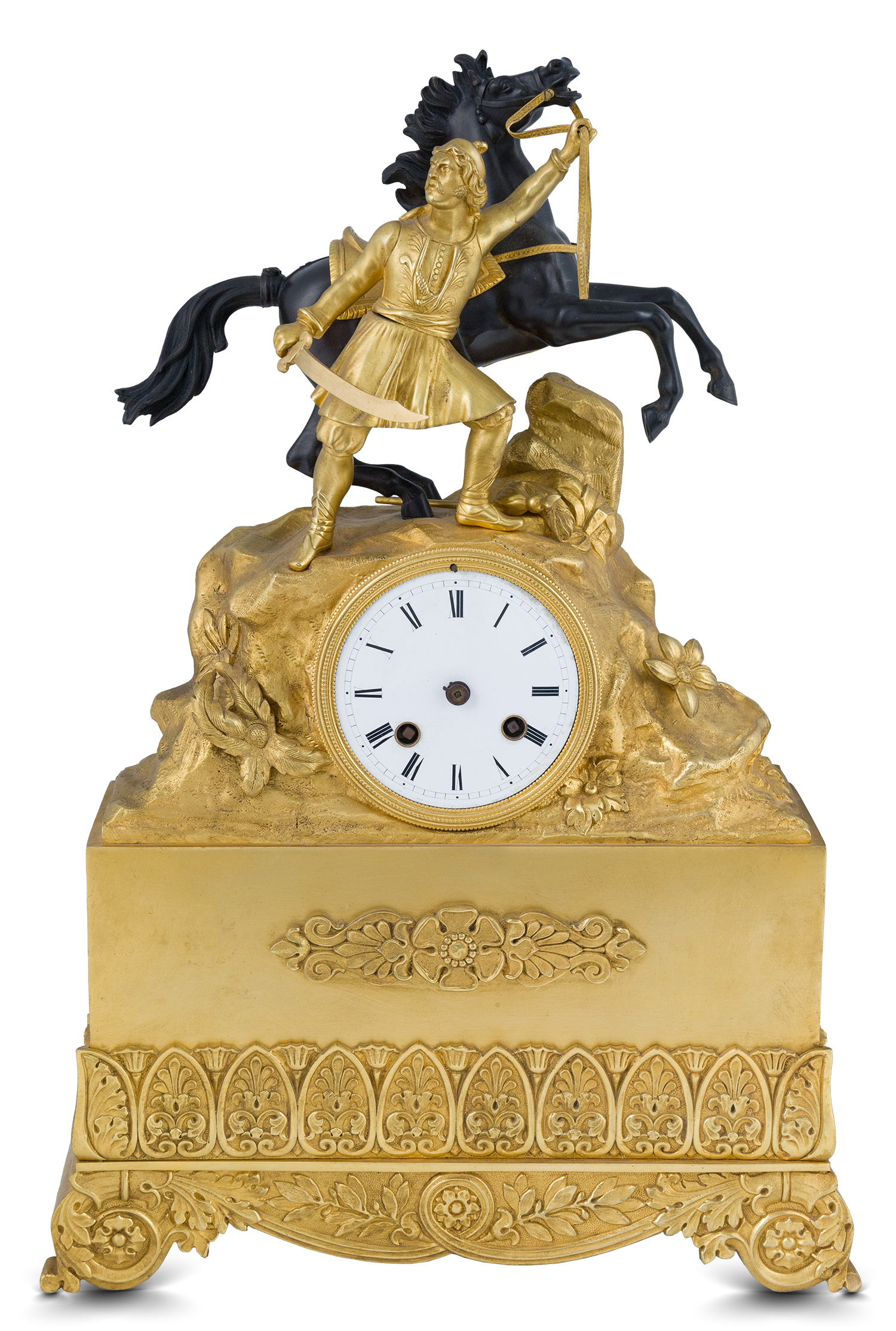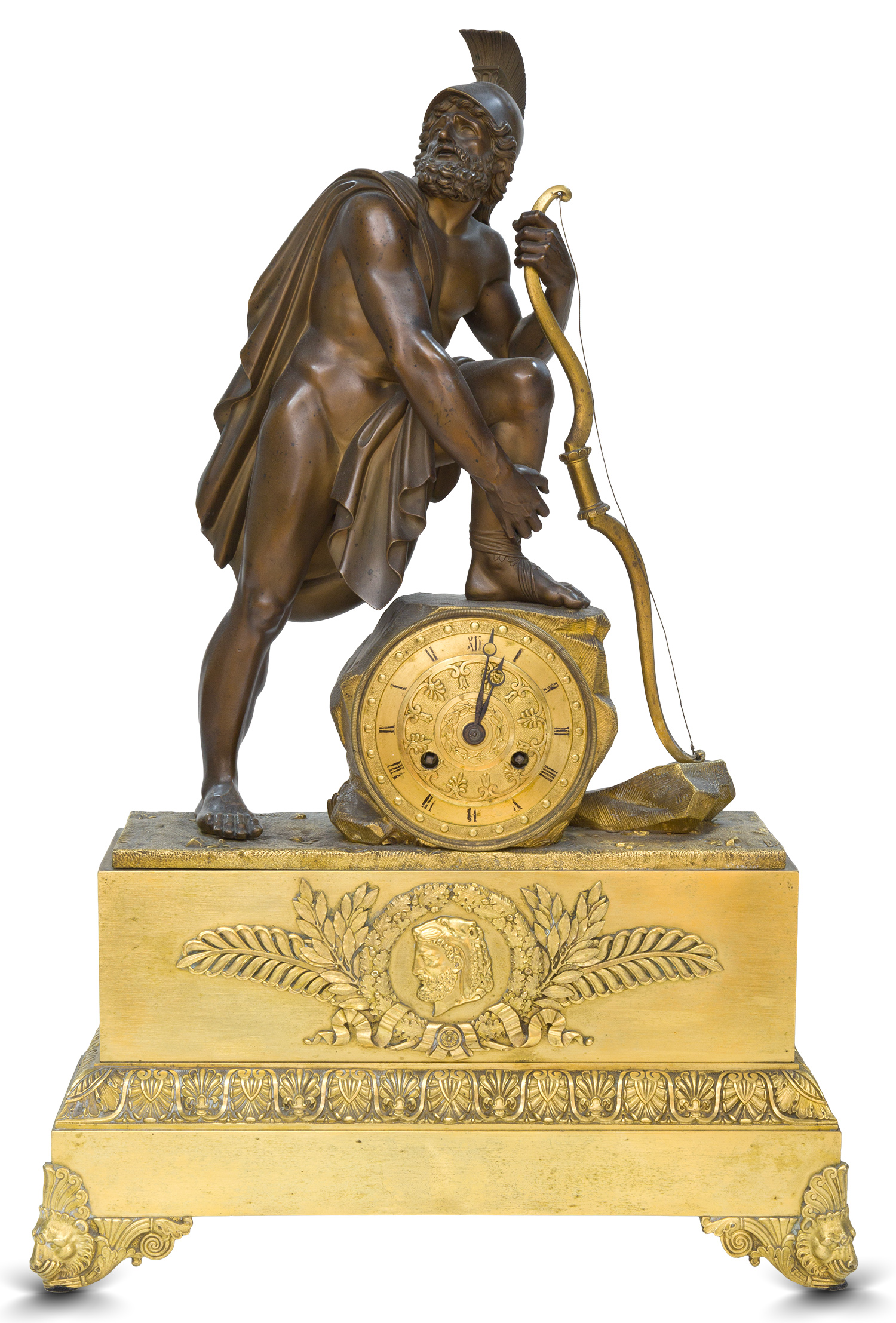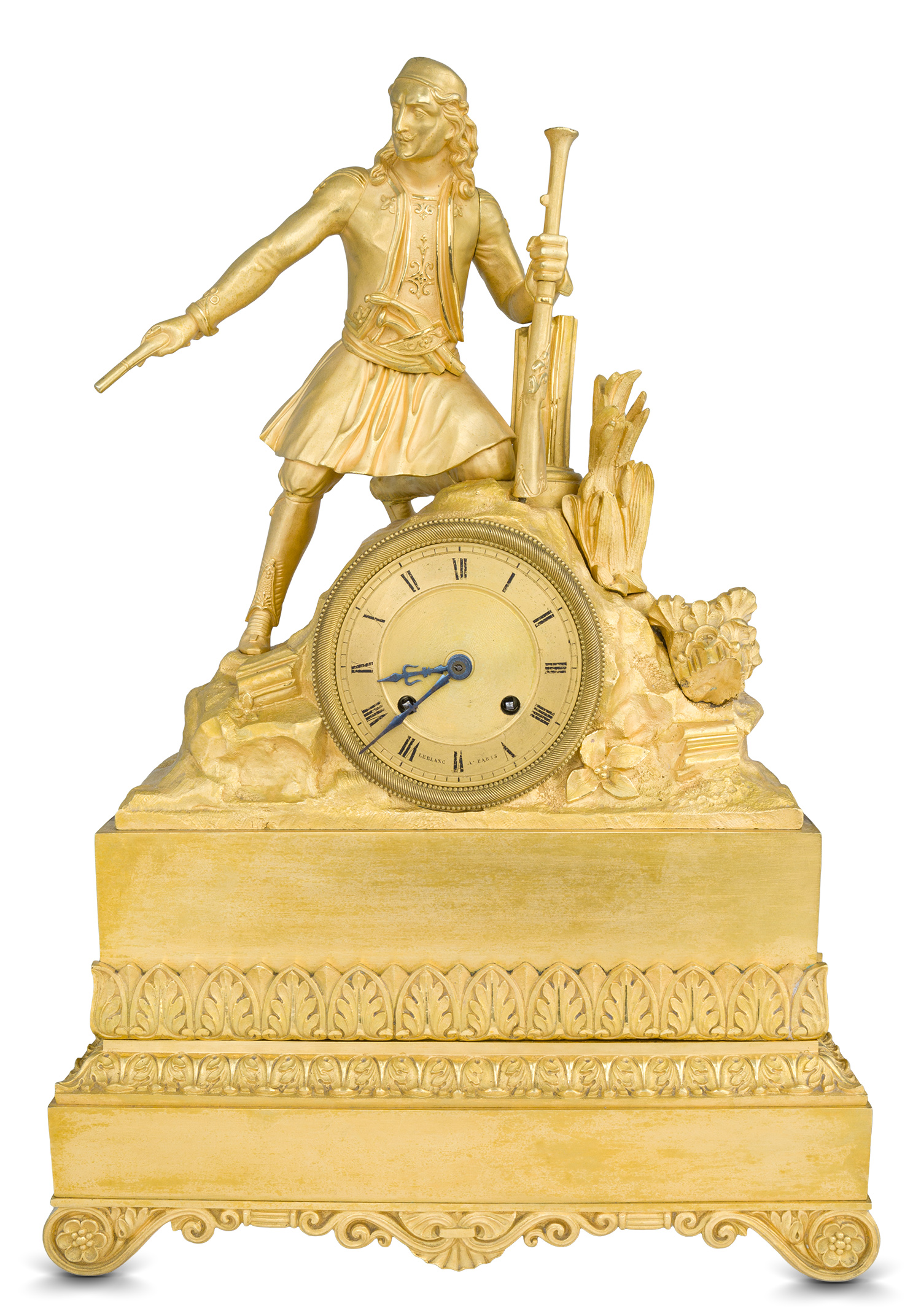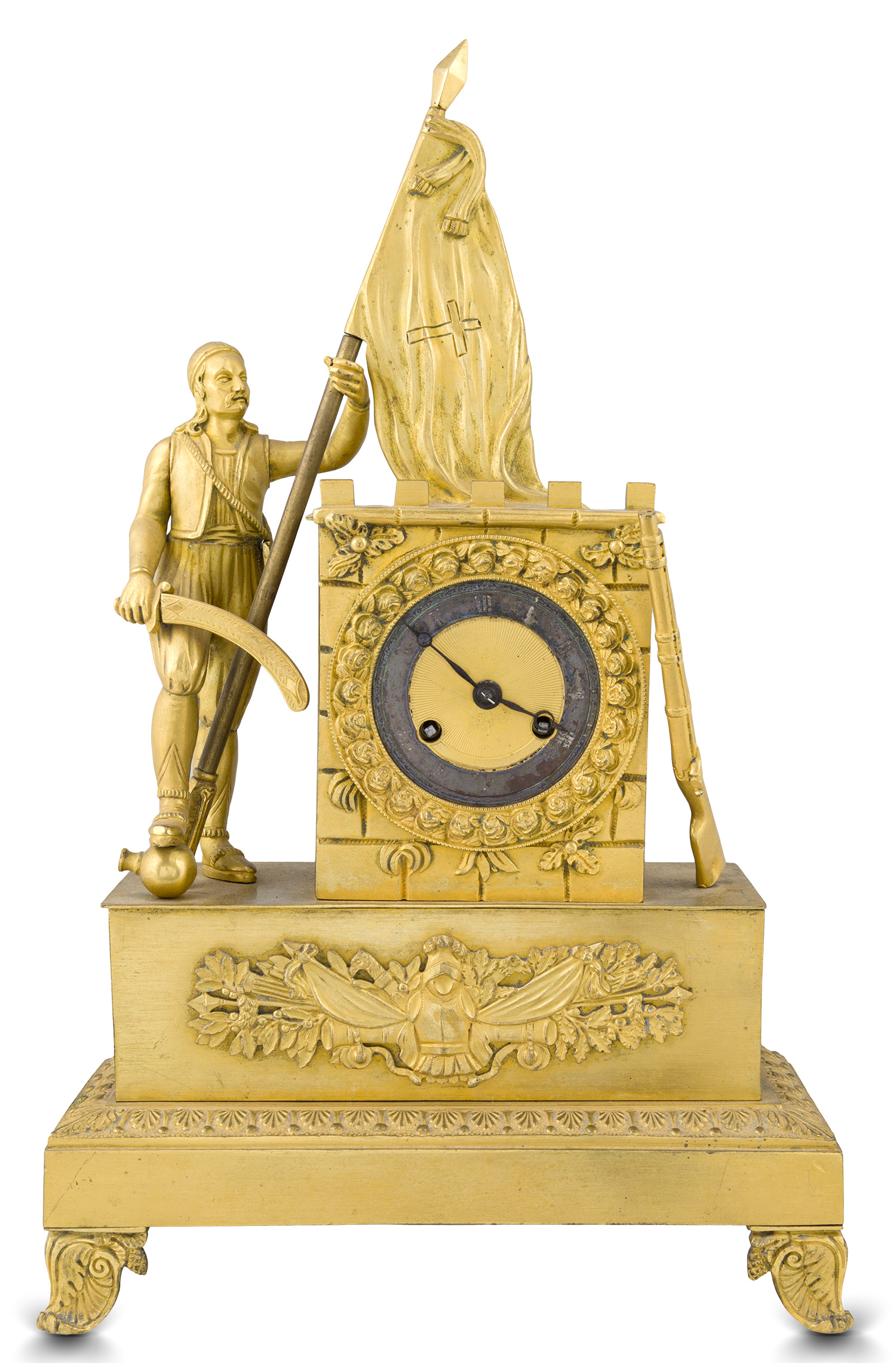 Φιλελληνικό ρολόι από επιχρυσωμένο και πατιναρισμένο μπρούντζο.