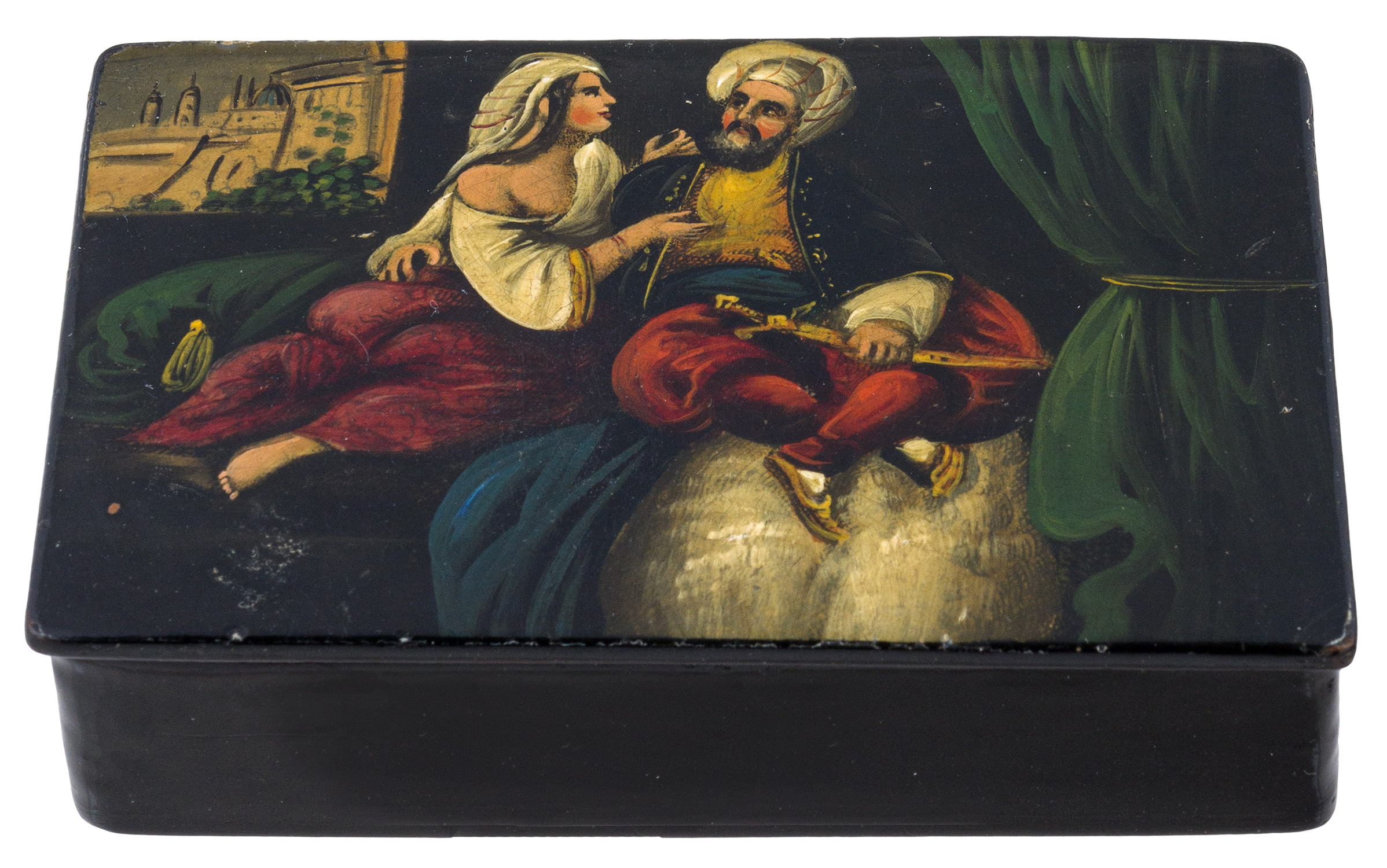 Παράσταση λιθογραφημένη και επιχρωματισμένη με το χέρι σε papier mâché